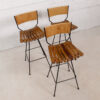Set of 3 Arthur Umanoff Iron, Wood & Raffia Swivel Stools