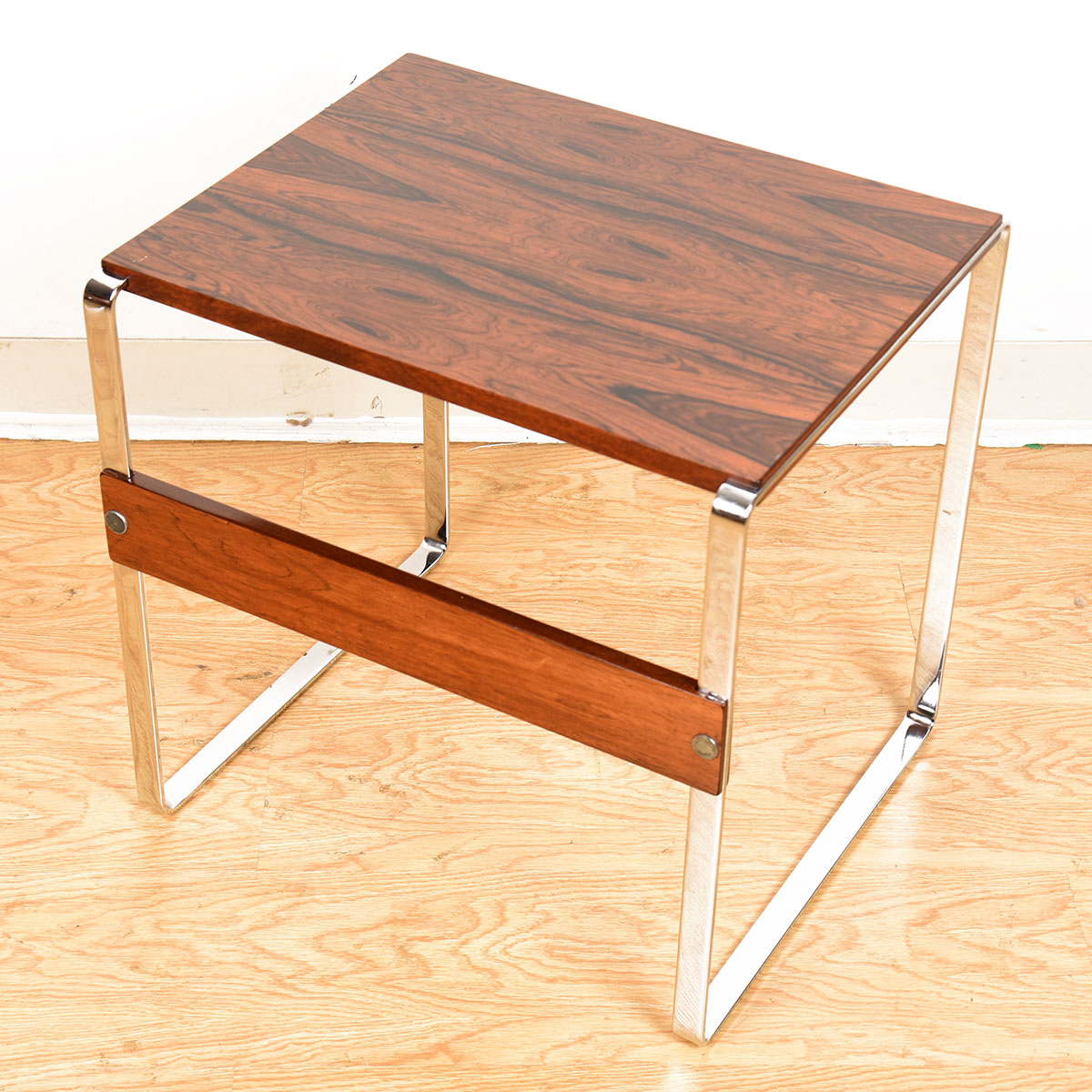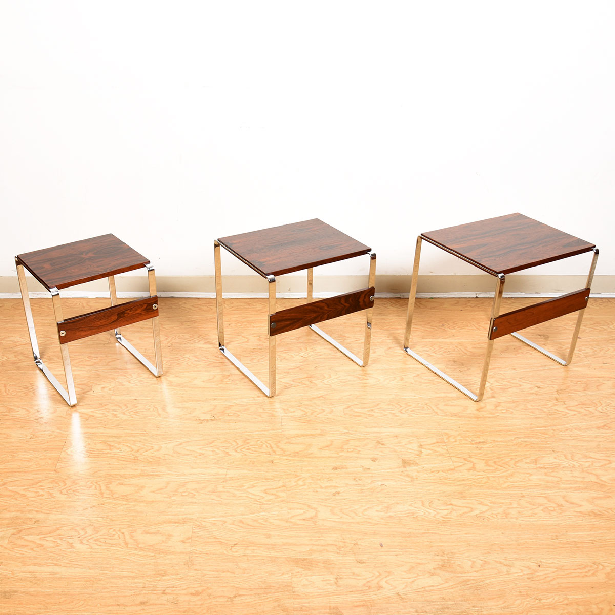 Set of 3 Danish Modern Rosewood + Chrome Nesting Tables