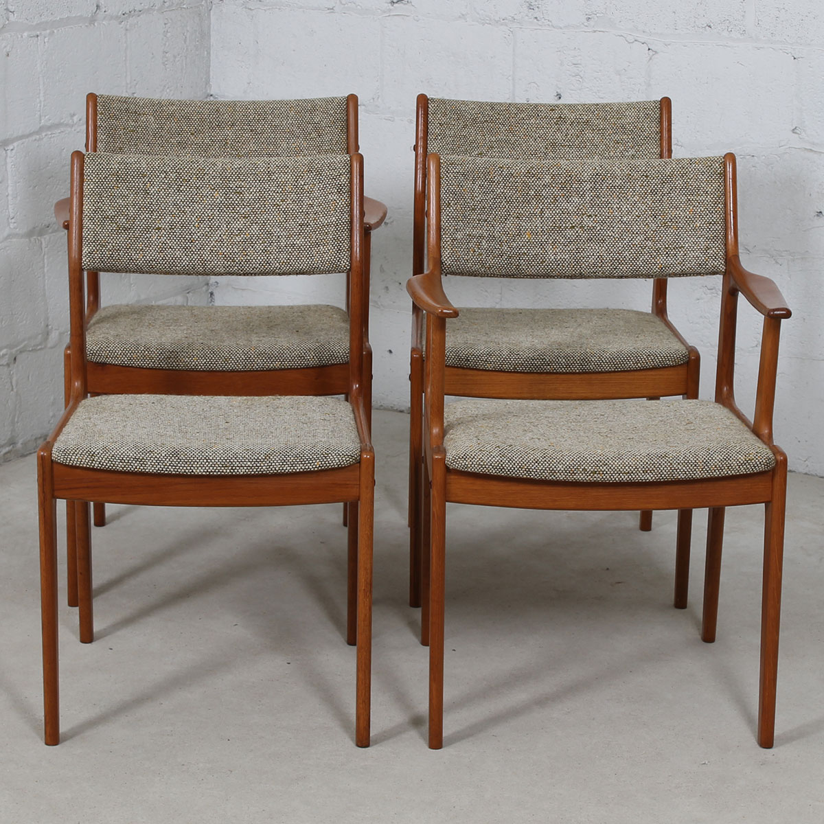 Set of 4 (2 Arm + 2 Side) Danish Modern Teak Dining Chairs
