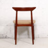 These striking Danish Modern chairs make a bold statement…the dark teak frame of the chair back leaves a square open space, using positive and negative space to define the meaning of a chair. The assertive legs echo the frame and the overall effect is very graphical and bold. The seats are upholstered.