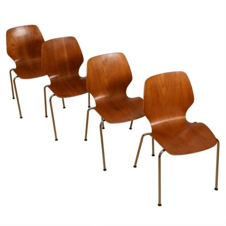 Stacking Set of 4 Iverson Teak + Chrome Leg Dining Chairs by Westnofa
