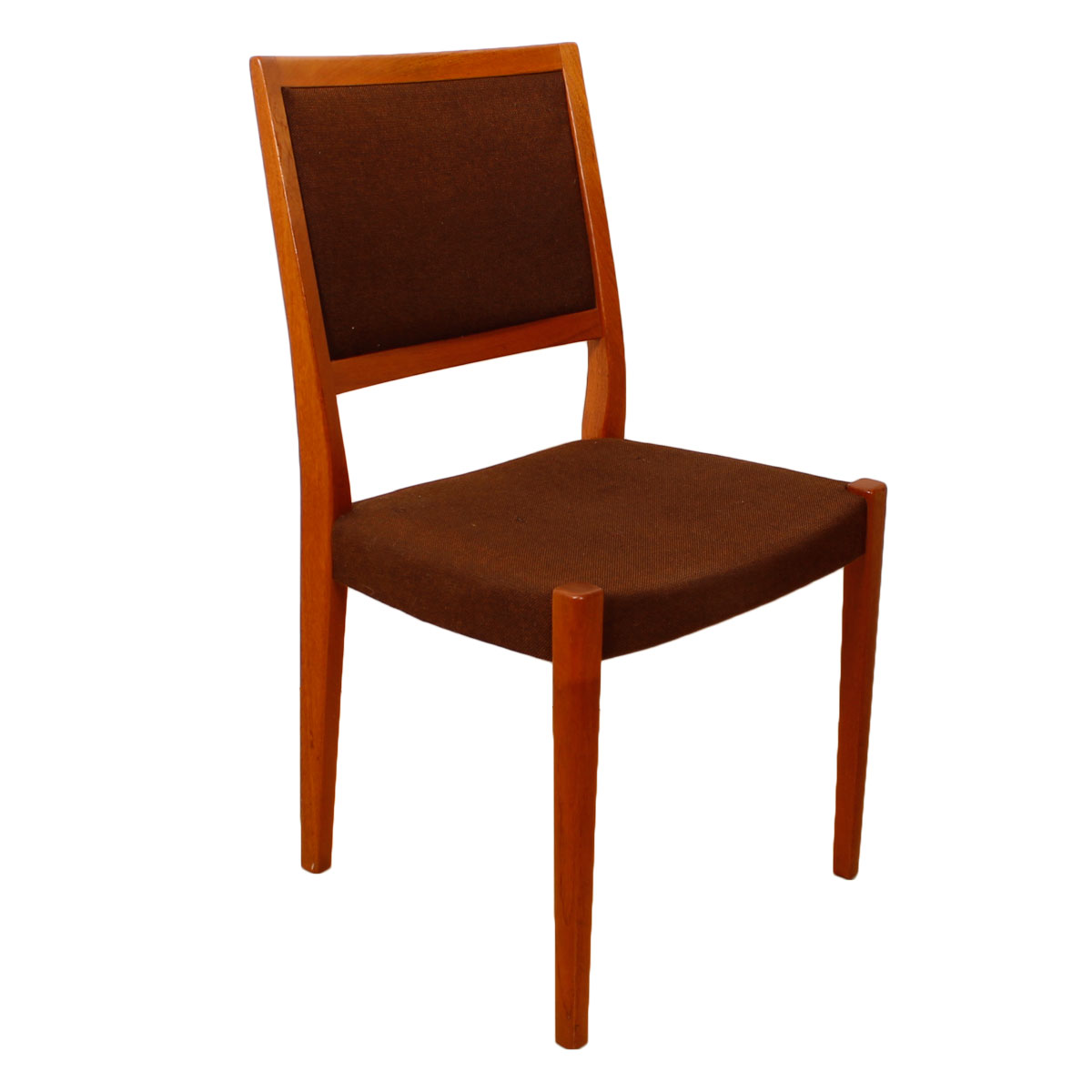 Nice set of Danish teak dining chairs. Leave the upholstery as-is or recover in your own custom fabric.