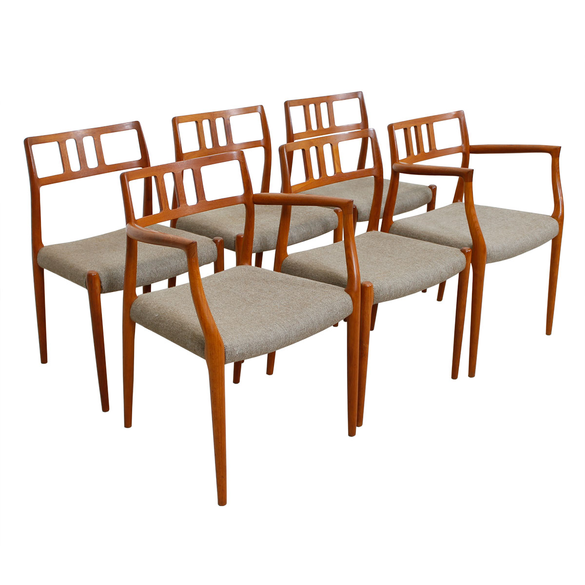 Set of 6 (2 Arm + 4 Side) Danish Teak (#64 & #79) Niels Moller Dining Chairs