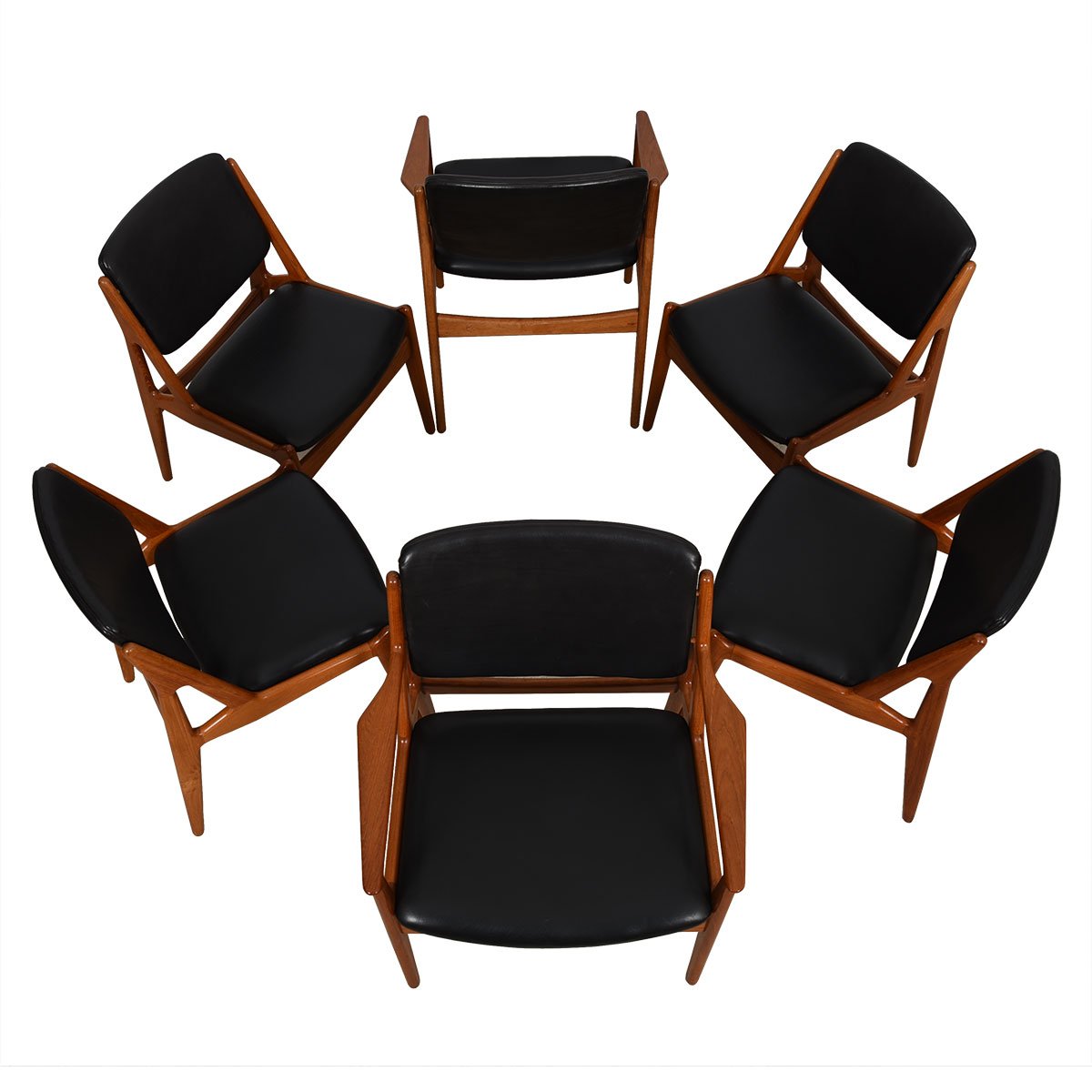 Set of 6 Arne Vodder Danish Teak Dining Chairs 2 Arm + 4 Side