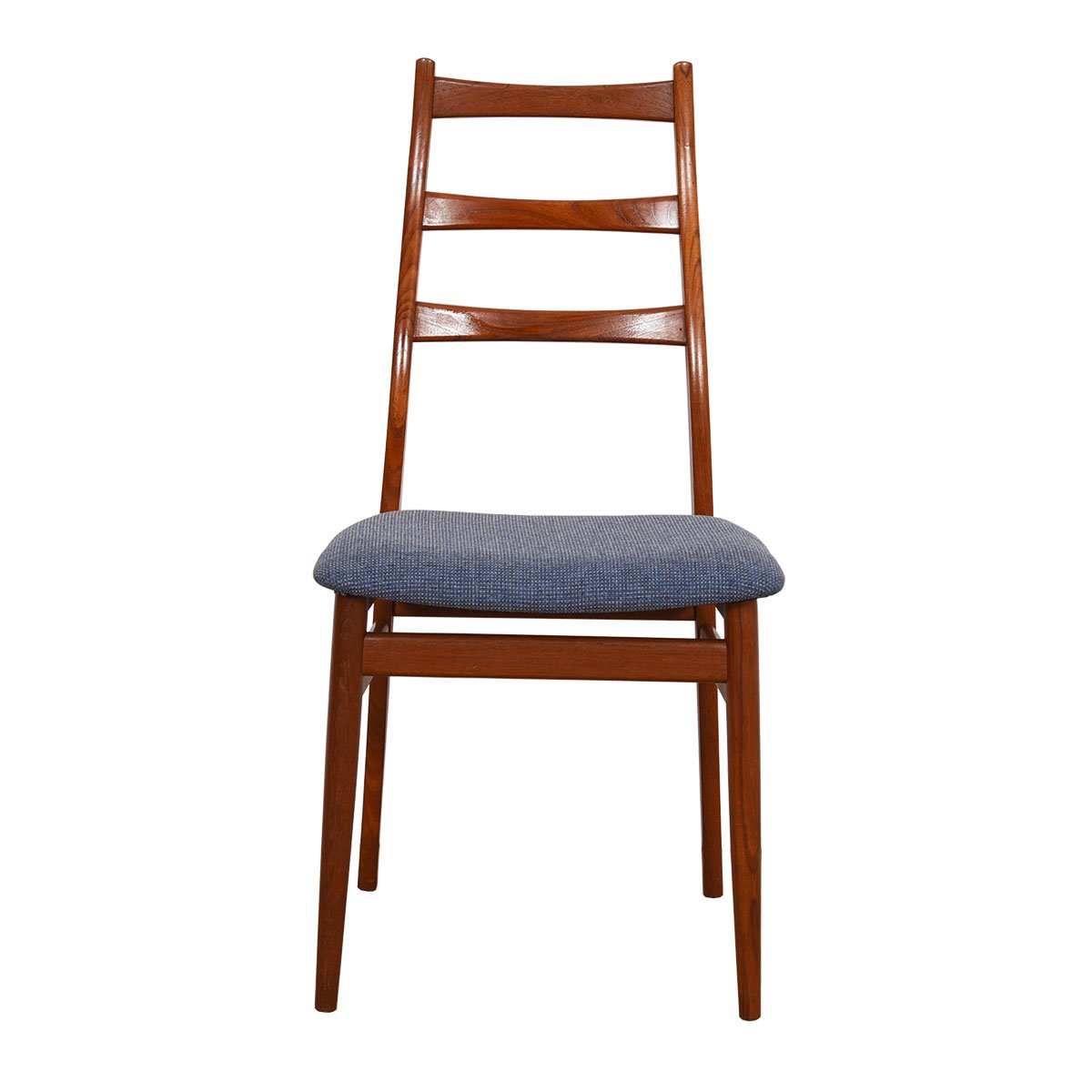 Beautifully minimalist set of Danish Modern “half ladderback” chairs in teak. Curvaceous lines make these super sexy!