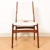 Great looking set of 6 Danish Modern dining chairs, having a teak frame that is exposed on the side of the fully upholstered back
