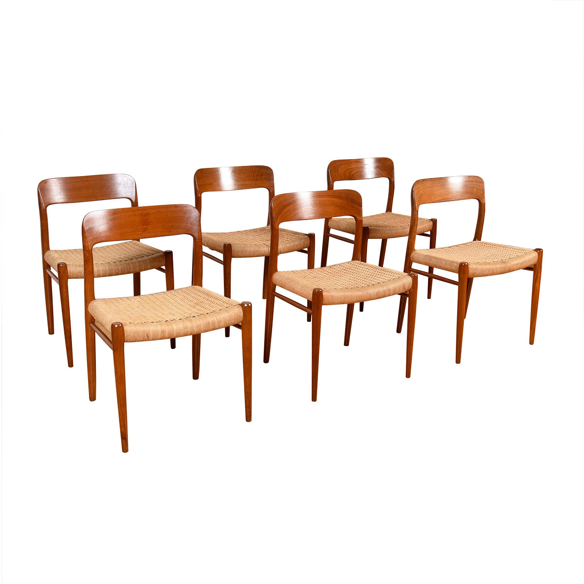 Set of 6 Danish Modern Teak Moller #75 Dining Chairs w: Corded Seats