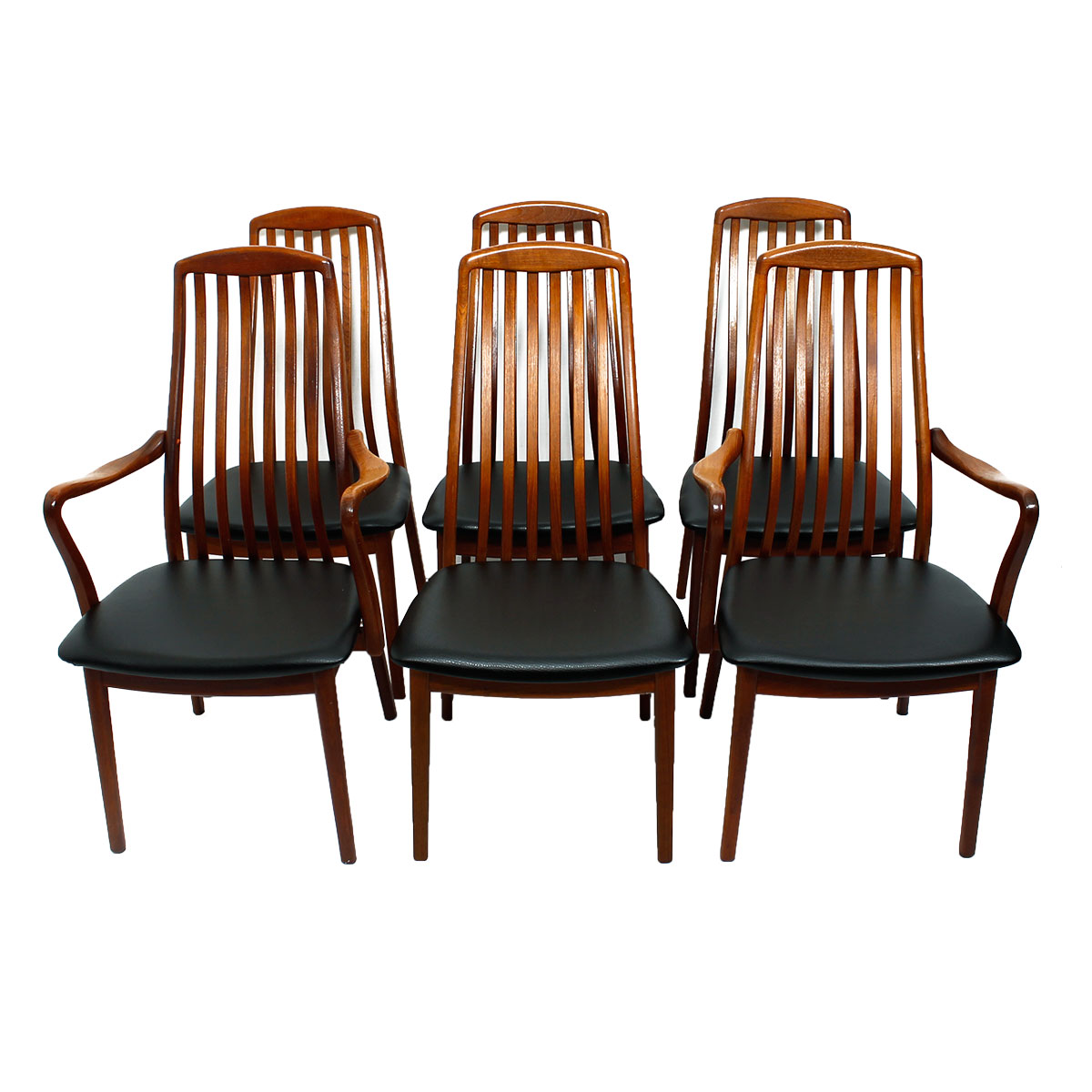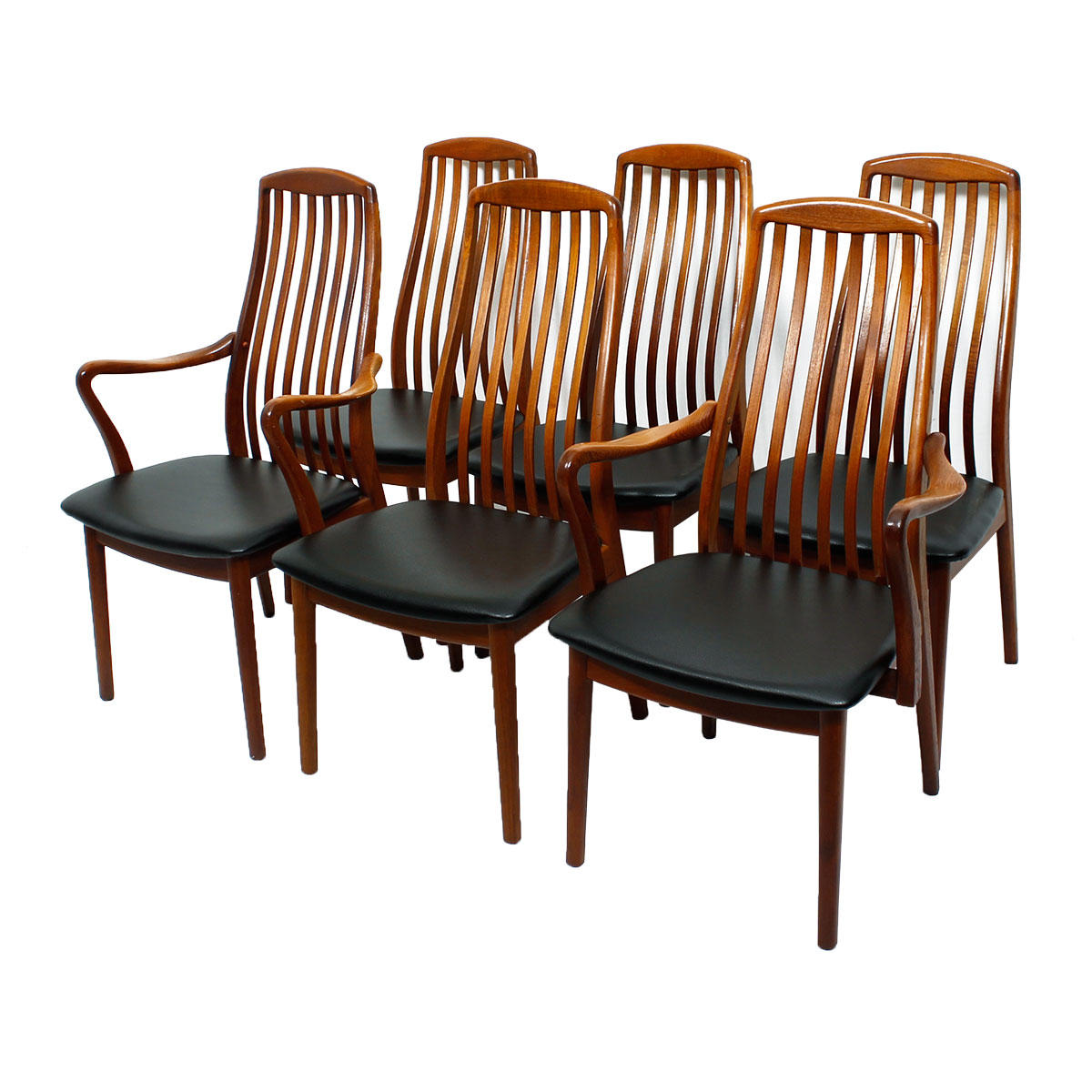 Set of 6 Danish Slatback Dining Chairs w/ New Upholstery