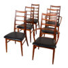 Beautifully proportioned and refined set of teak ladder back chairs from Koefoeds Hornslet. Two arm chairs and four side chairs. Chairs don’t get much sexier than these stylish, comfortable and slender chairs.