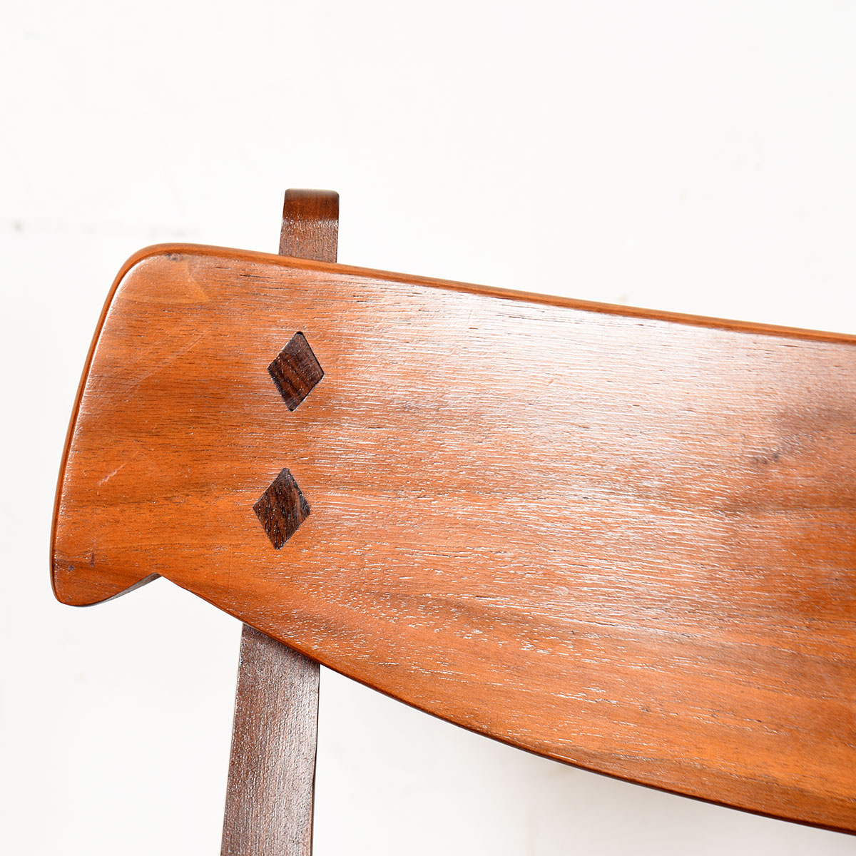 Exquisite Mid Century Modern Walnut Chairs w/ Diamond Shaped Inlays of Rosewood on Backrest.