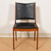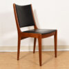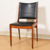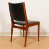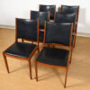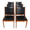 A set of 6 Johannes Andersen for Uldum Mobelfabrik Danish Teak Dining Chairs. In Warm Solid Teak. Upholstered In Their Original Black Leatherette.