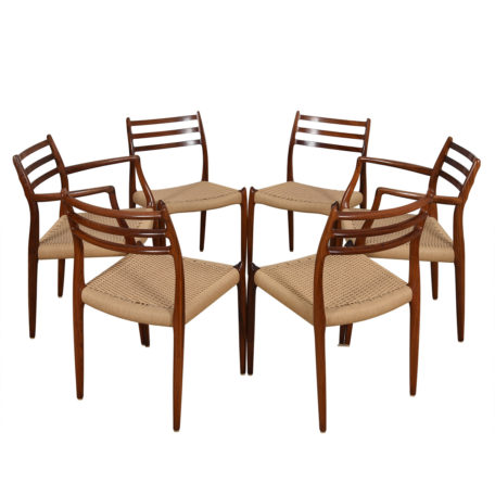 Set of 6 Rosewood Dining Chairs 2 Arm (Model #62) + 4 Side (Model #78) by Niels Moller