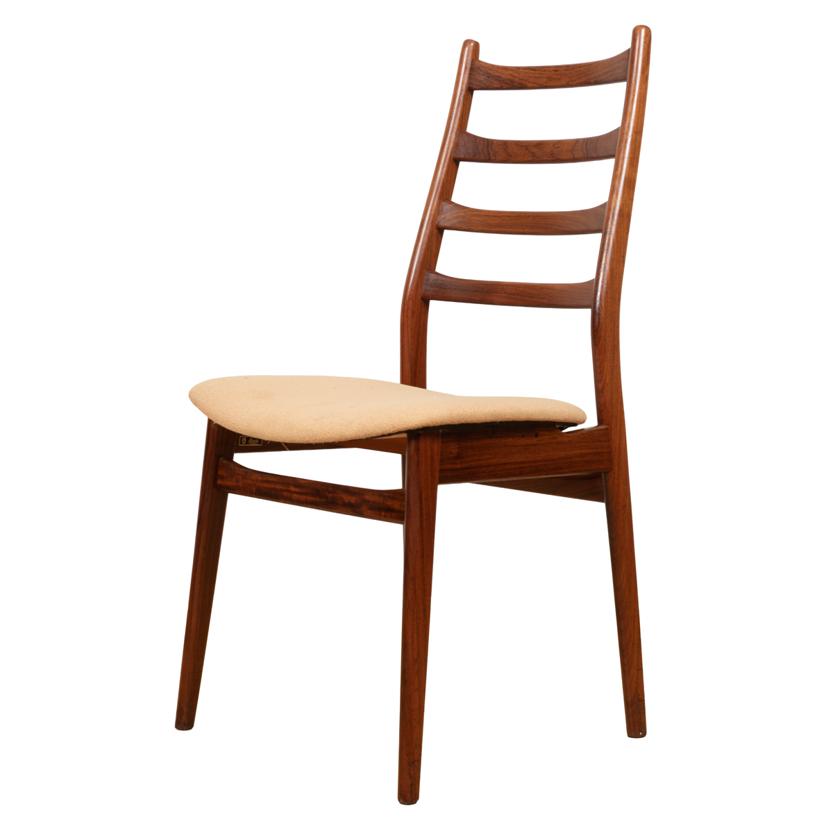 Set of 6 Scandinavian Modern Ladder Back Rosewood Dining Chairs w/ New Upholstery