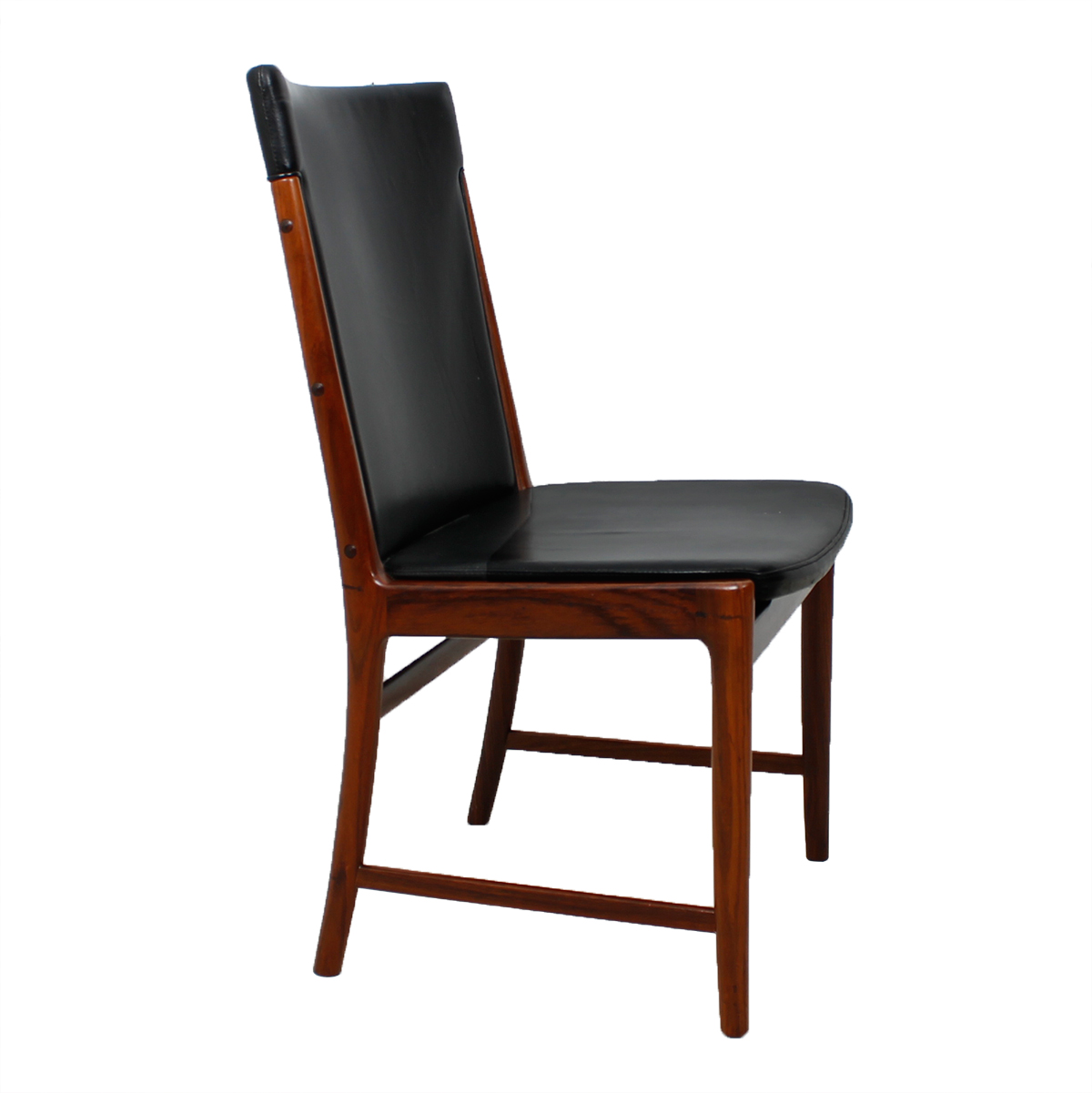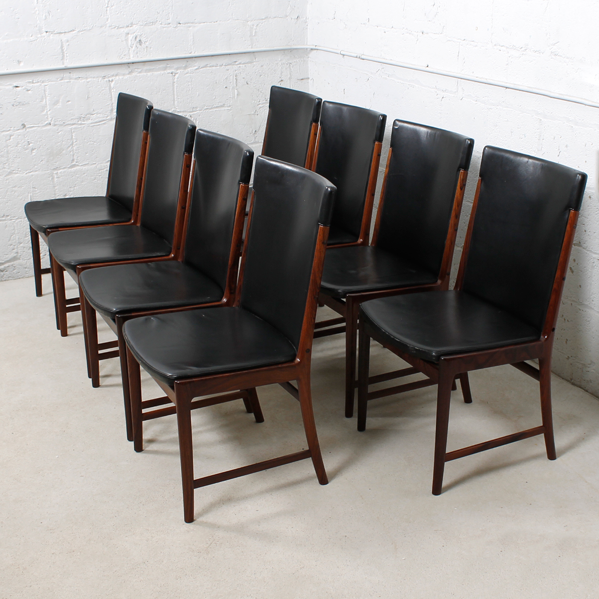 Kai Lyngfeldt Larsen for Søren Willadsen – Rare Set of 8 Rosewood & Black Leather Dining Chairs