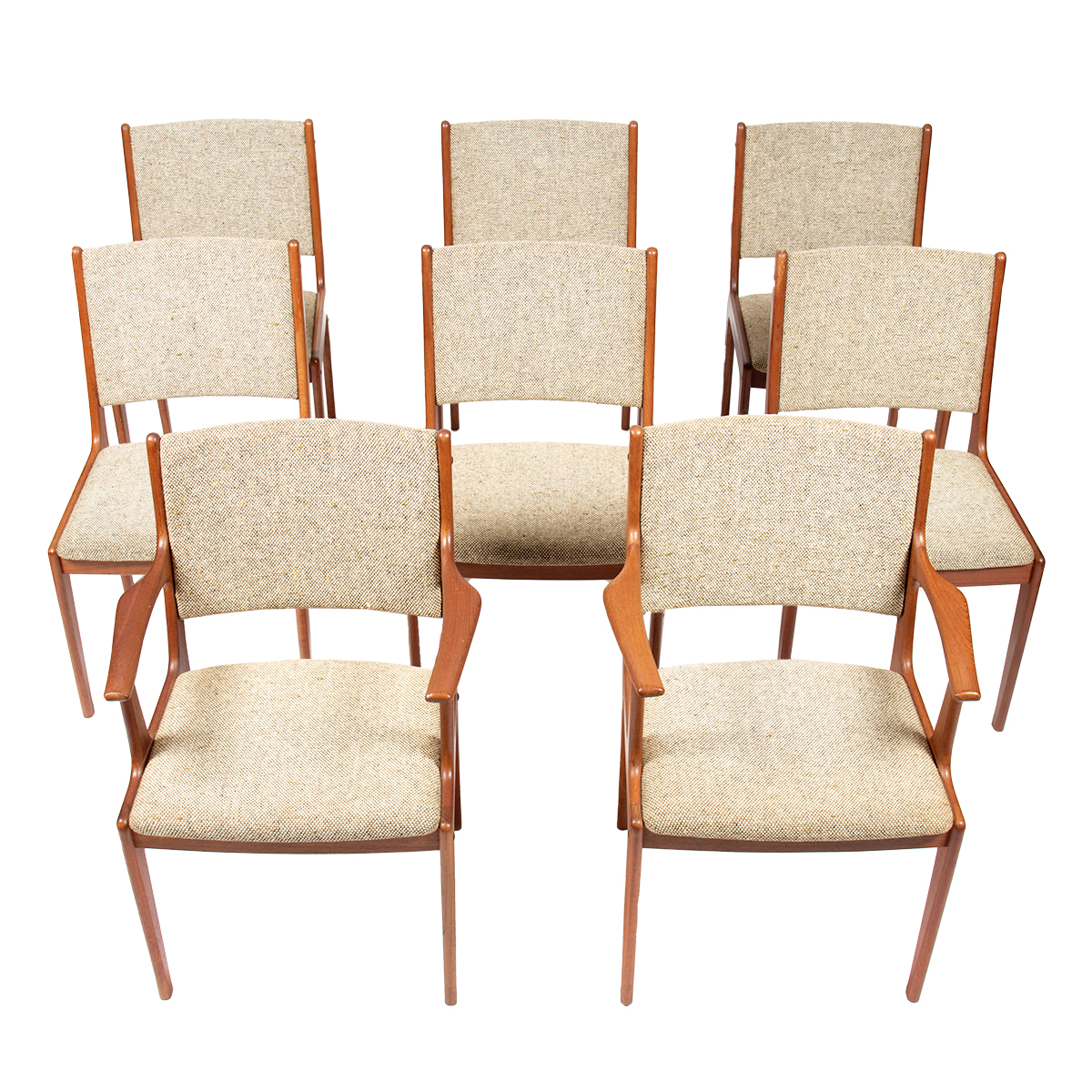 » » » » Set of 8 Teak Upholstered (2 Arm + 6 Side) Tall-Back Dining Chairs