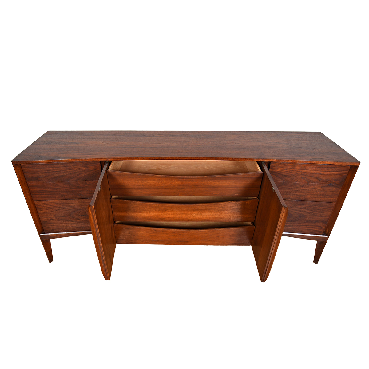 To arrange purchase or for more information about the Sexy + Curvaceous MCM Long Walnut Dresser w. Sculpted Pulls + Concave Front please call us at 202.882.1648 or email us at info@modernmobler.com