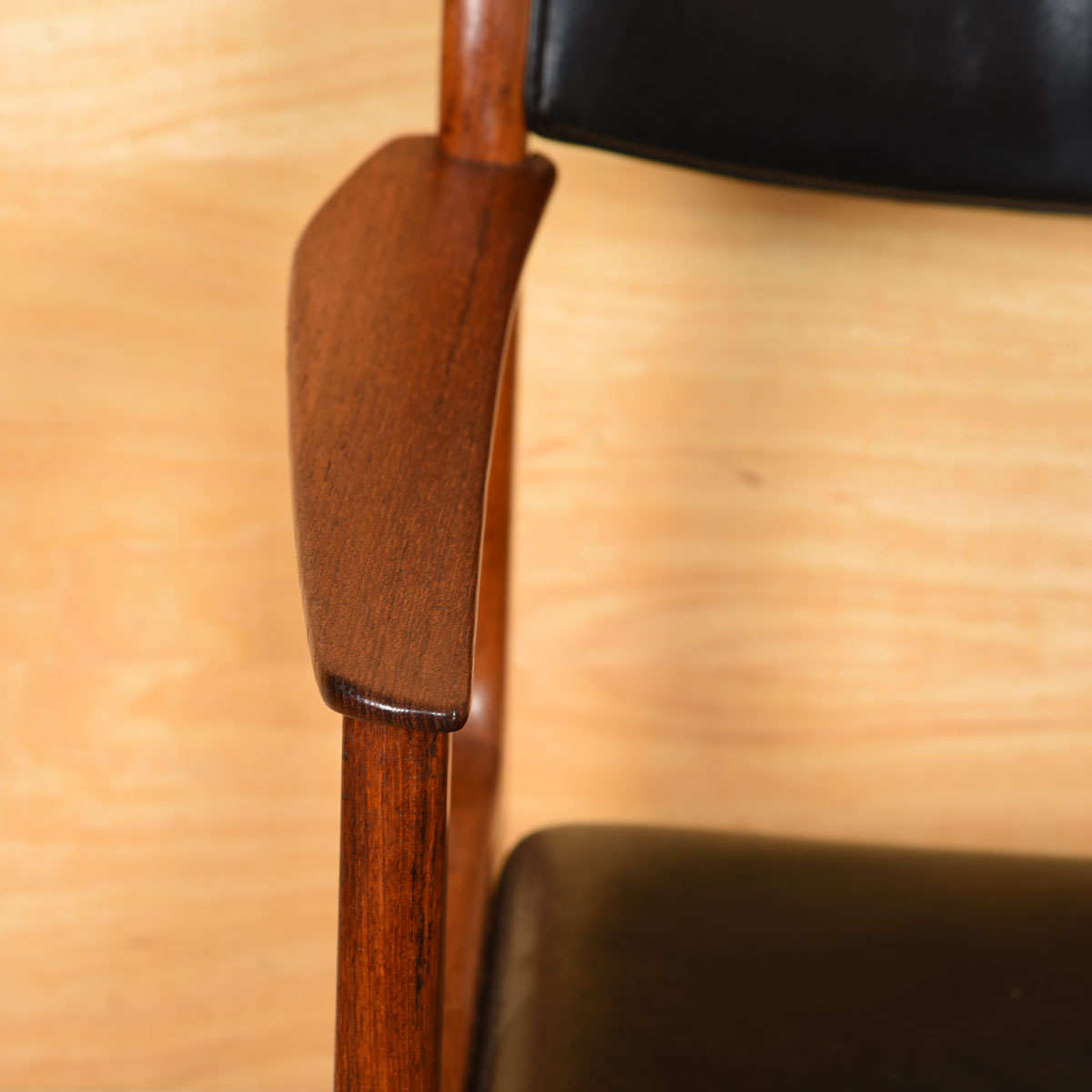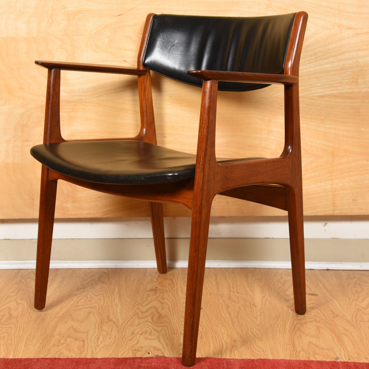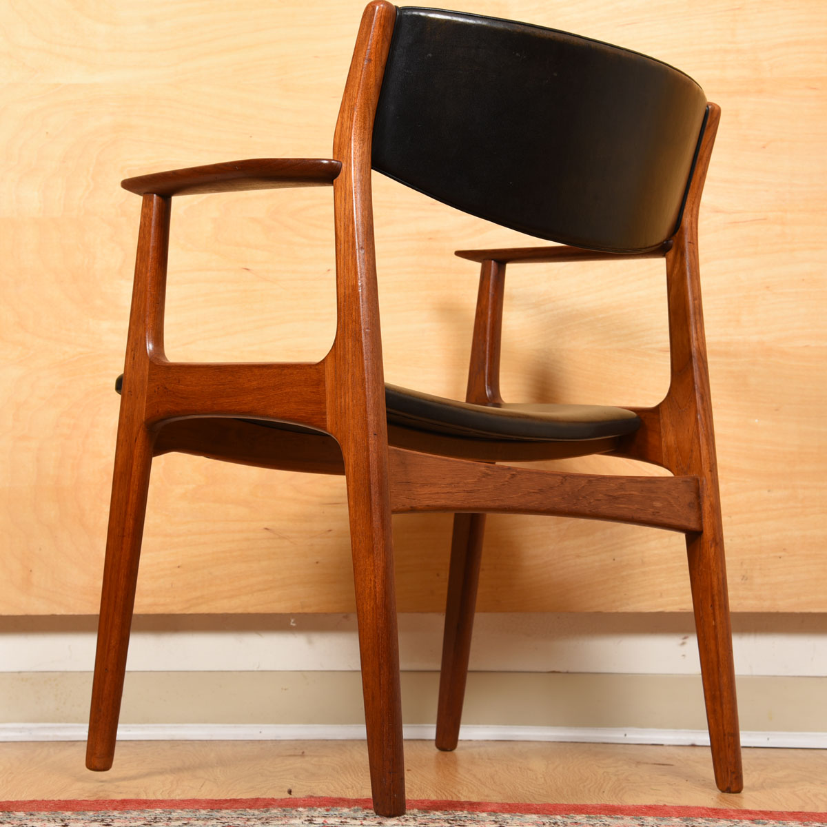 Single Leather Danish Modern Teak Dining / Accent Arm Chair