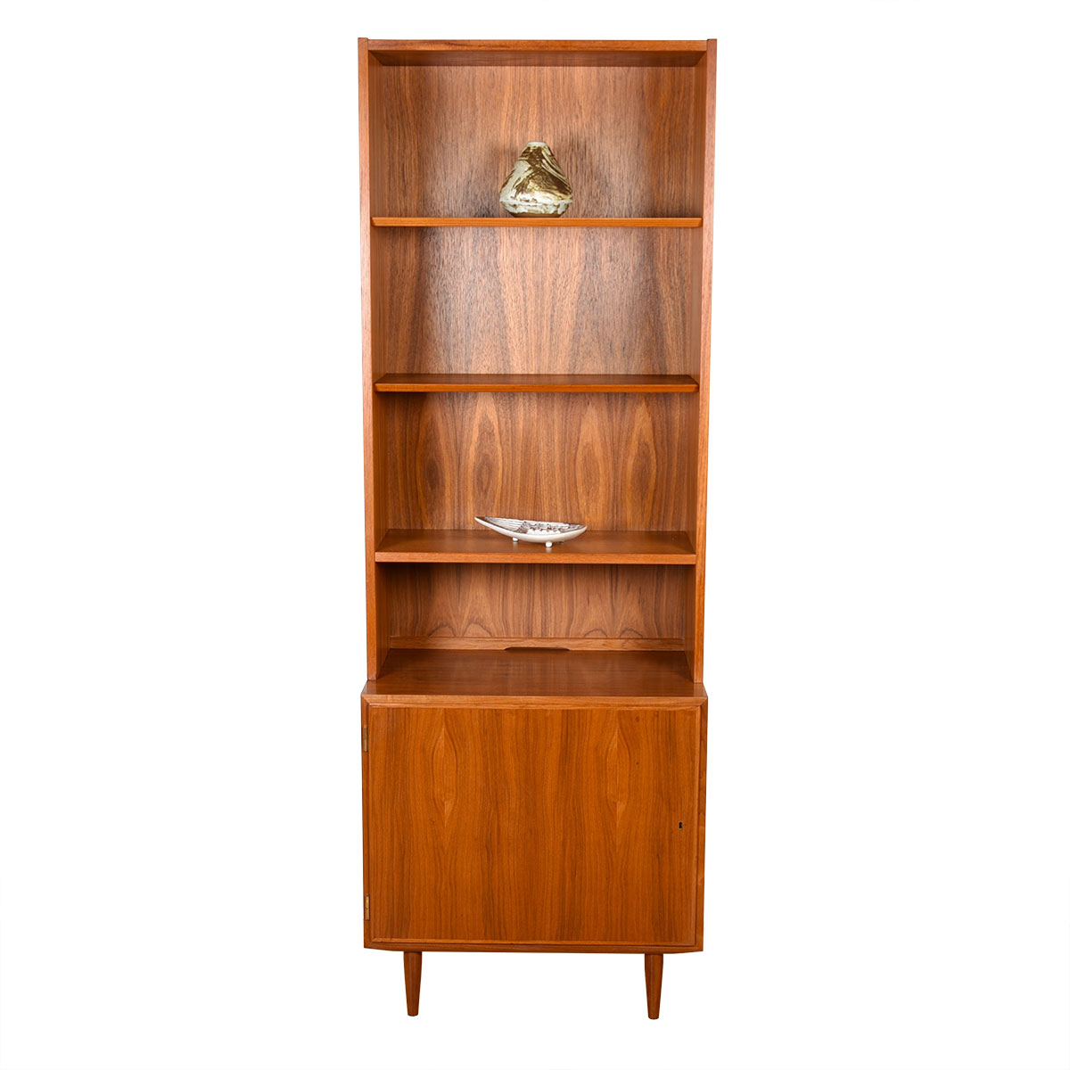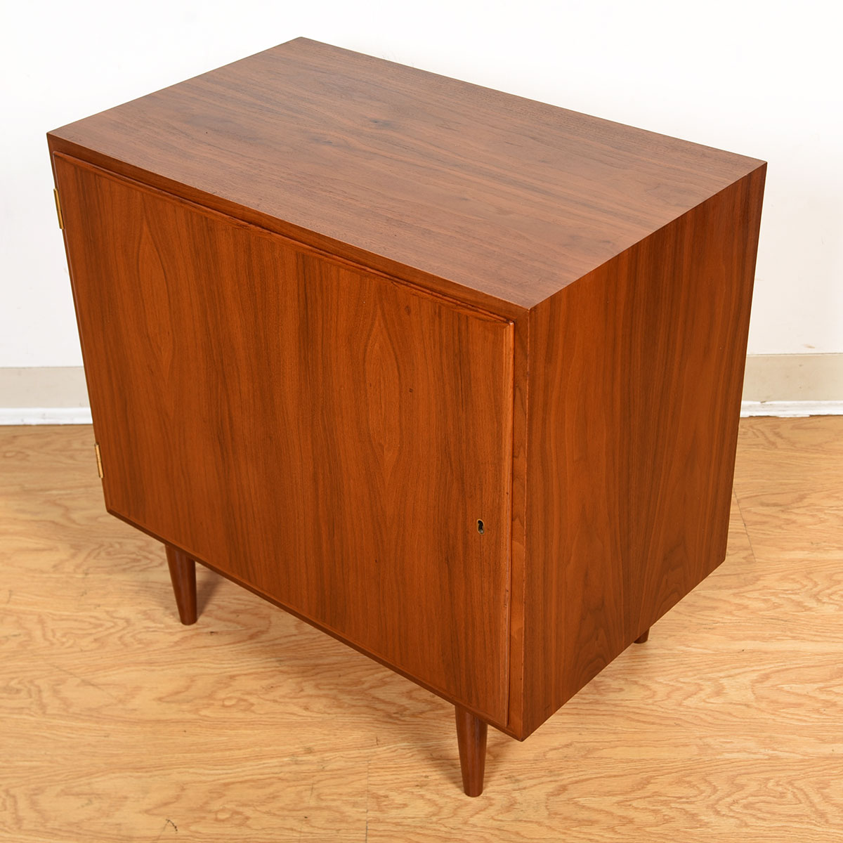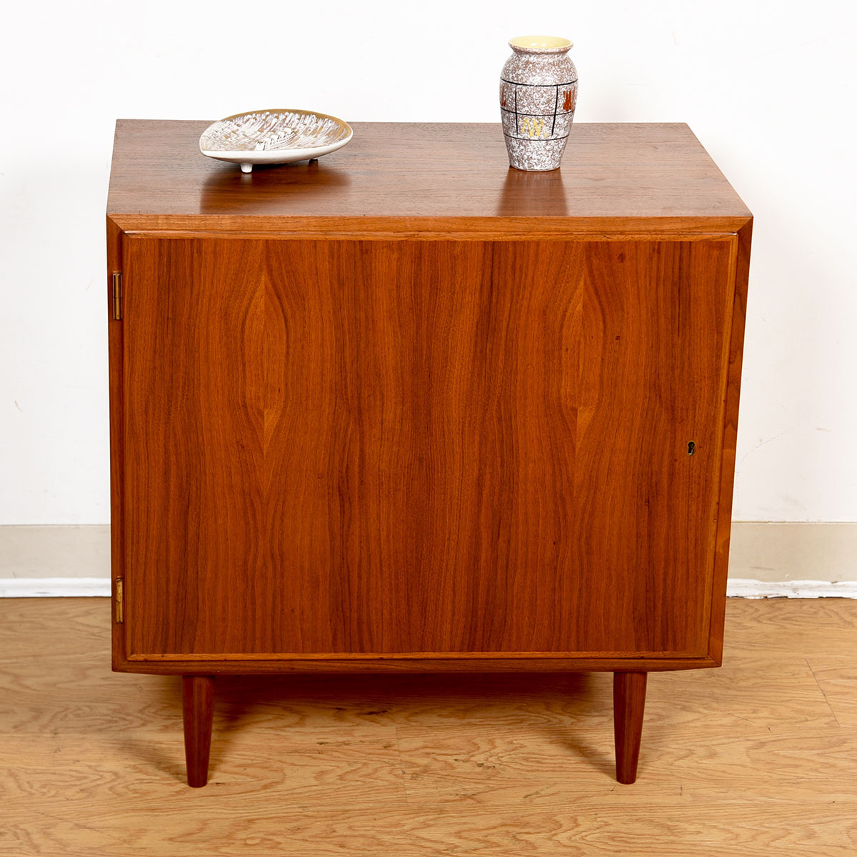 Slim Danish Modern Teak Locking Cabinet + optional bookcase top