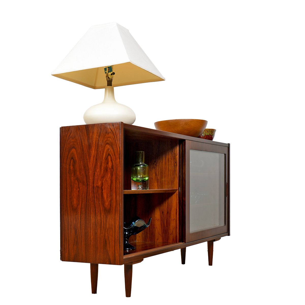 To arrange purchase or for more information about the Slim Danish Rosewood Mid-Sized Adj Shelf Bookcase w: Sliding Glass Doors please call us at 202.882.1648 or email us at info@modernmobler.com