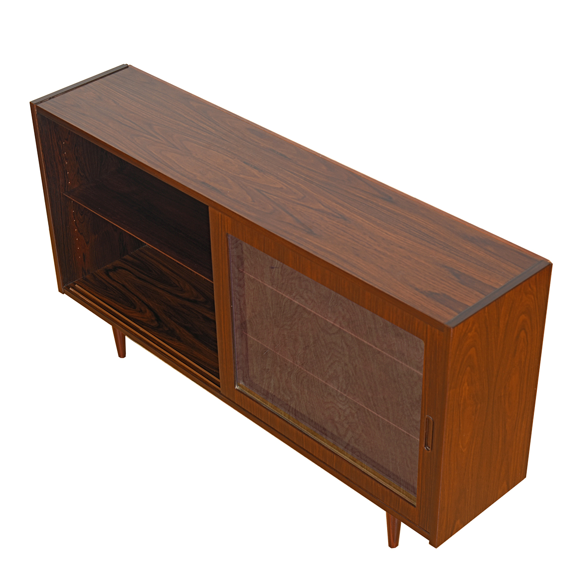 Slim Danish Rosewood Mid-Sized Adj Shelf Bookcase w: Sliding Glass Doors