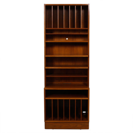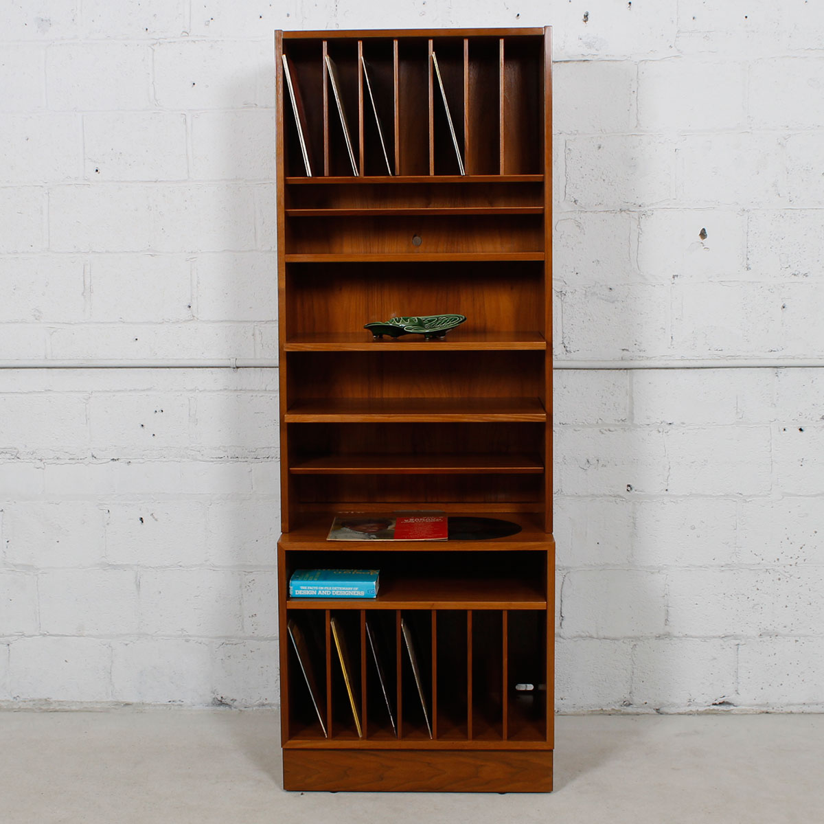 Is your collection of vinyl overflowing? From the original era of vinyl — or “records” — comes this Danish Modern storage and display cabinet intended just for albums. Tall and narrow, it has slots above and below to hold your collection, plus shelving which could easily hold more records, your iPod, or some stereo systems.