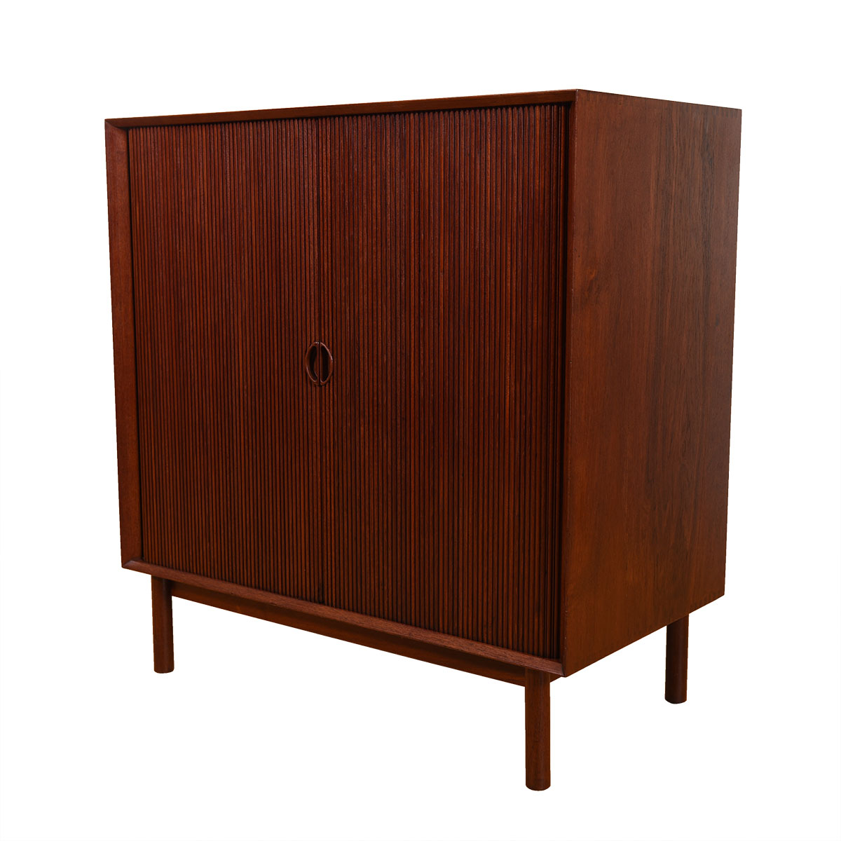 Solid Teak Tambour Door Cabinet by Peter Hvidt for Søborg Møbler