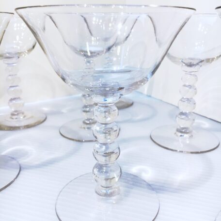 Fun and festive, these 50s vintage cocktail glasses feel marvelous in the hand. Set of 8 featuring a slightly graduated stacked ball stem.