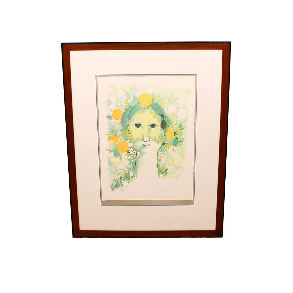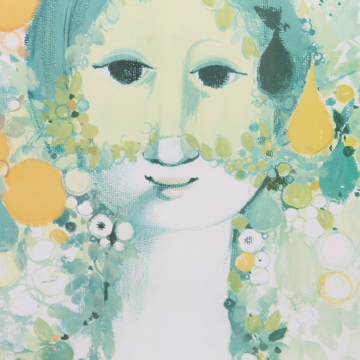 Print of artwork by celebrated Danish artist Bjorn Wiinblad. Artwork demonstrates the imaginative romantic style that defined Wiinblad’s most iconic works. Image from artwork was the inspiration for 1986 German exhibition of Wiinblad’s work.