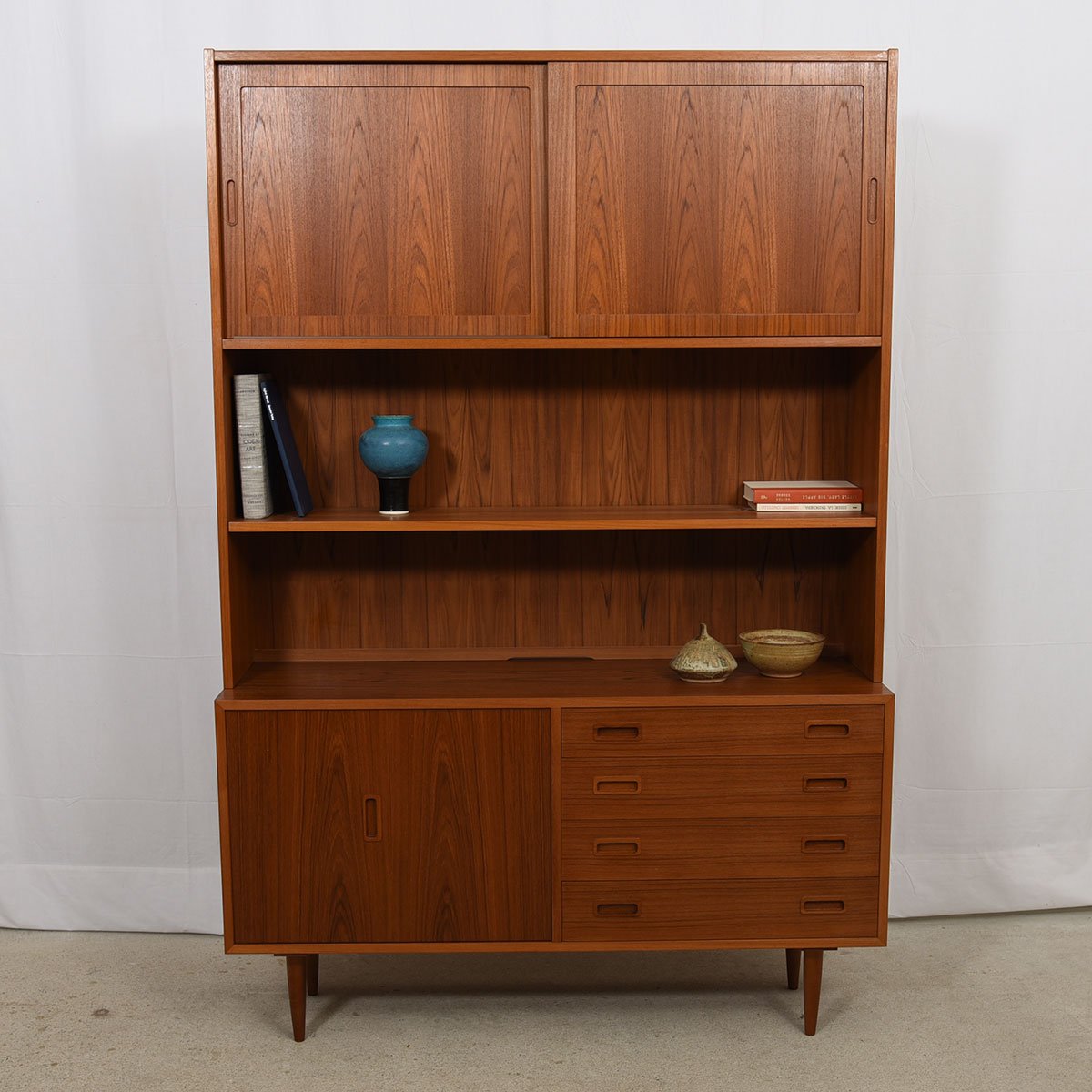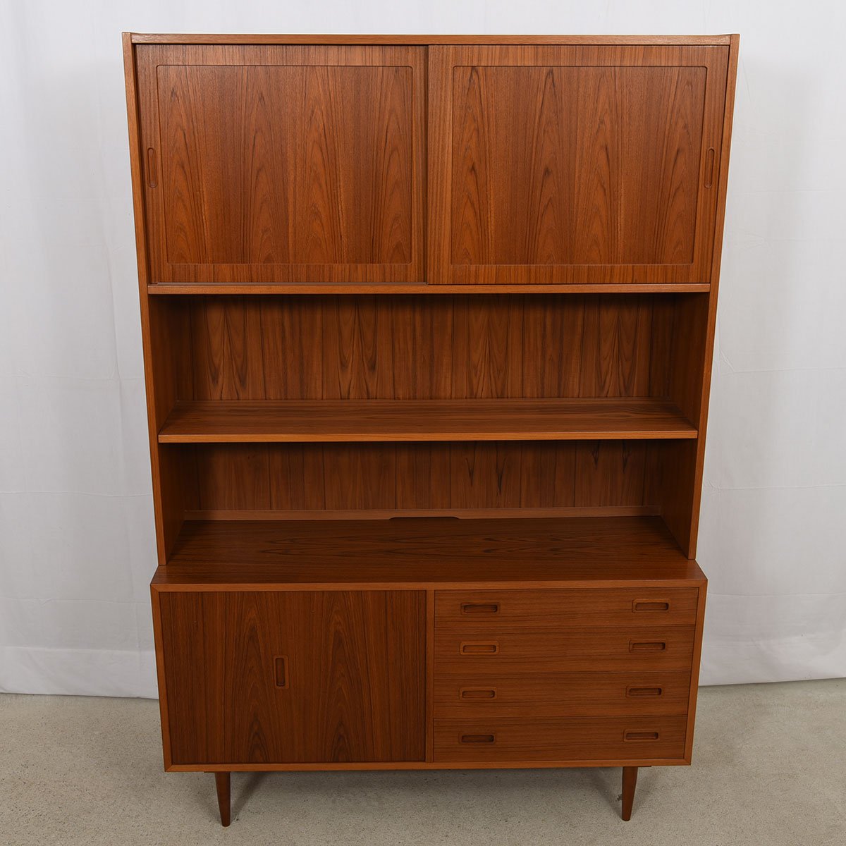 Stunning Danish Teak 2 Pc. Storage / Display Top w/ Bi-Fold Door Cabinet