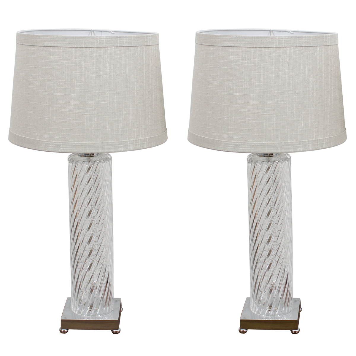 Stunning Pair of Spiral Twist Art Glass Column Lamps – Hollywood Glam!