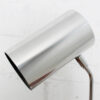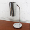 Here’s a stylish and functional chrome desk lamp from the ’70s. A chrome cannister light tops a chrome arm on a chrome base. The lightbulb is set back inside the adjustable cannister so the light is super focused when aimed at its target. There is a push button on the base which turns the light on and off. Very cool look for your workspace.
