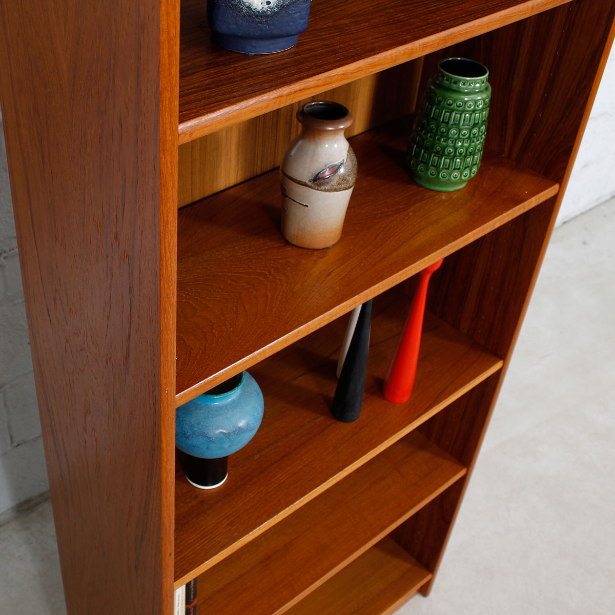For that special reading nook you’re creating for yourself, or in a hallway or placed beside other teak bookshelves, this tall and slim bookcase is sure to please. Has five adjustable shelves plus one in the middle that is stationary, giving you lots of options for storing books of varying heights or using the shelves to display coveted objects.