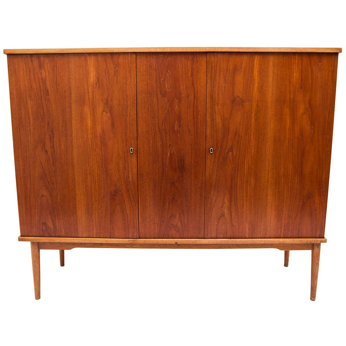 Tall Locking Danish Teak 2 Door Bar / Storage Cabinet / Armoire