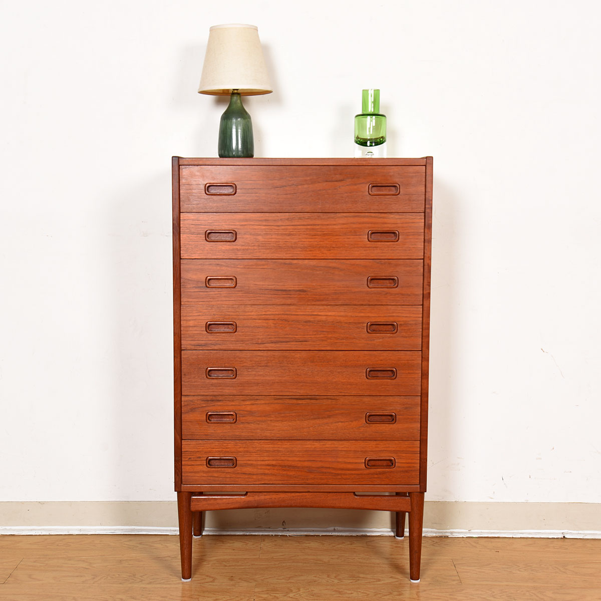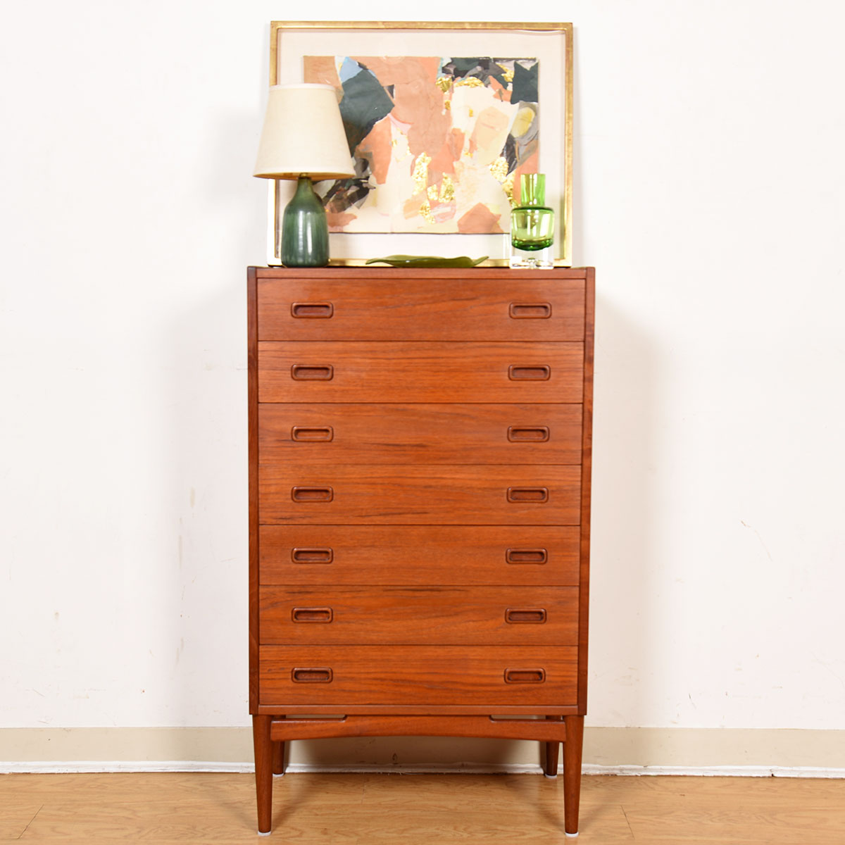 Tall Slim & Trim Danish Teak Entryway Chest of Drawers / Dresser by Mogens Kold