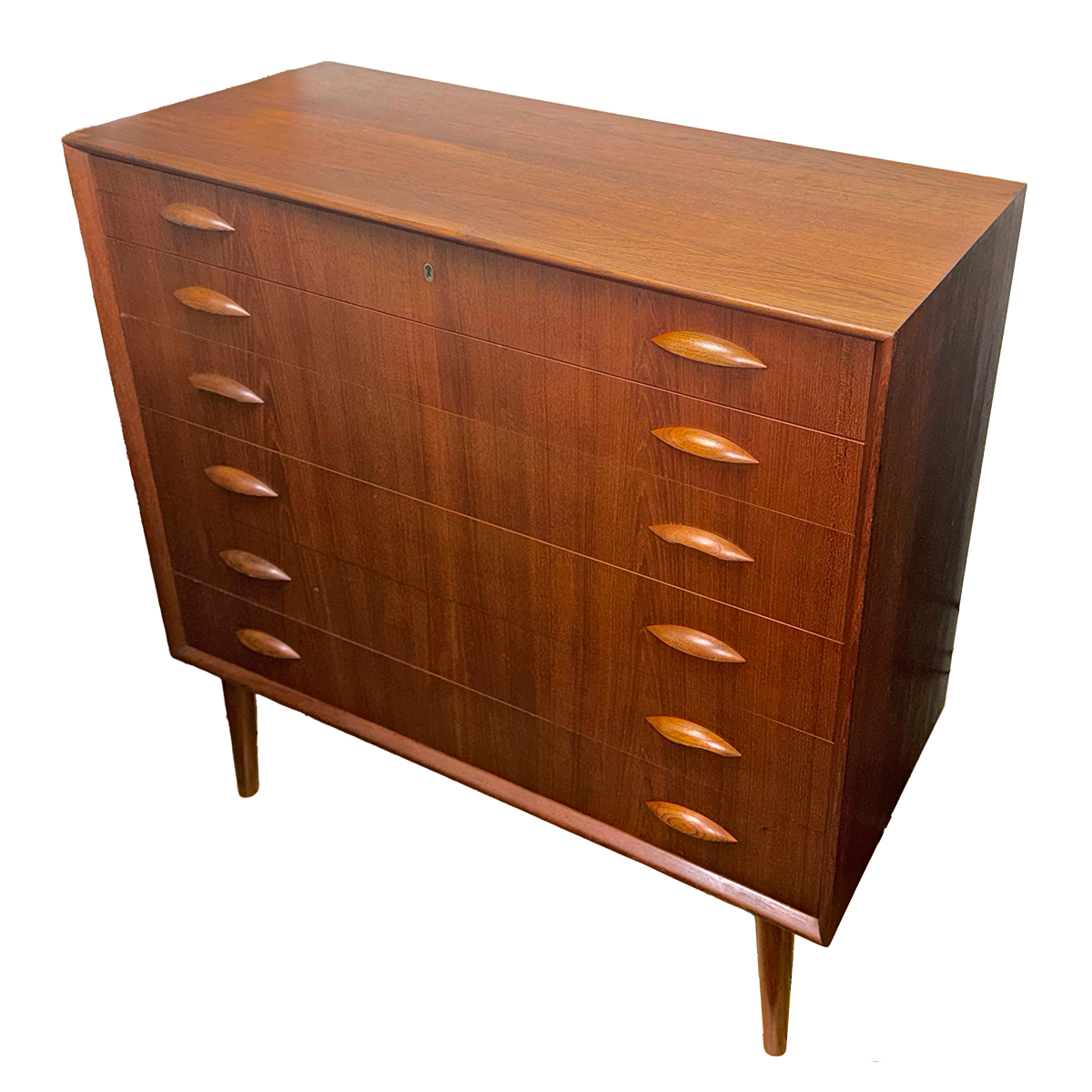 Tall Teak Danish Modern 6-Drawer Chest w Sculpted Pulls