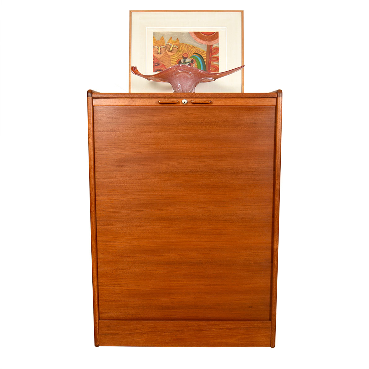 - A Danish Modern 3-Deep-Drawer Cabinet for Storage + and Files, with Tambour Door