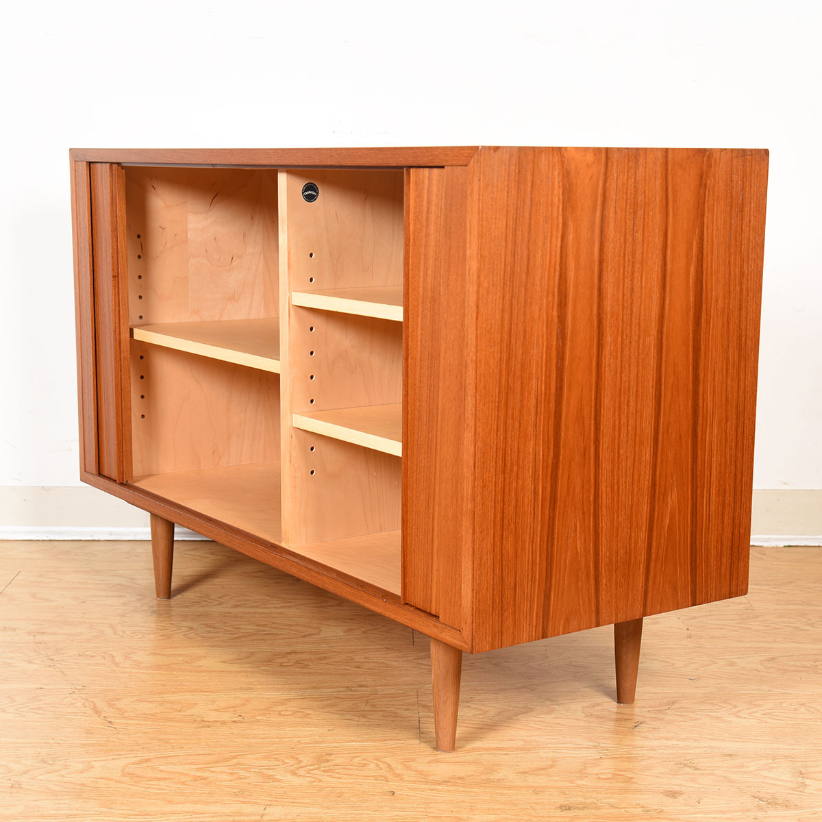 Tambour Door 42″ Apt-Sized Danish Teak Sideboard | Media Cabinet