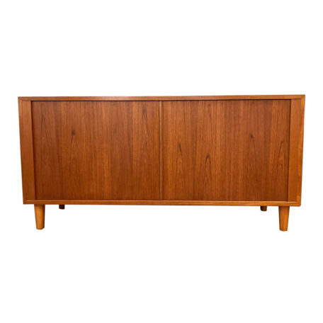 - Condo-sized, compact 54.5″ Danish Modern teak credenza / cabinet