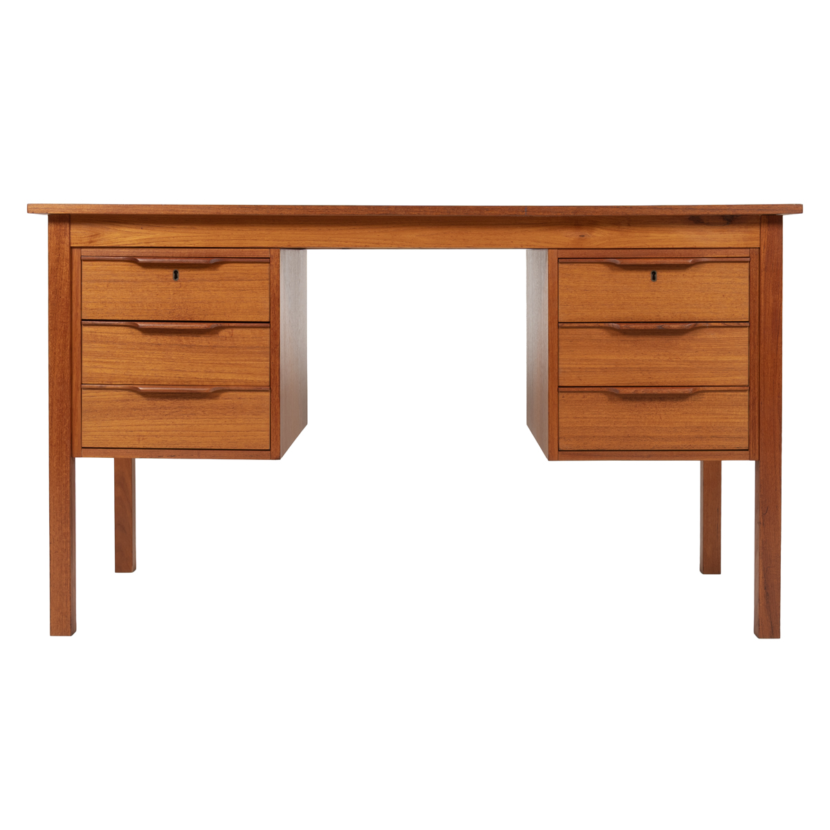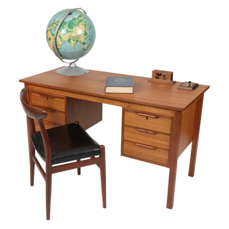 Teak Danish Modern Writing Desk — Thin w. Ample Storage