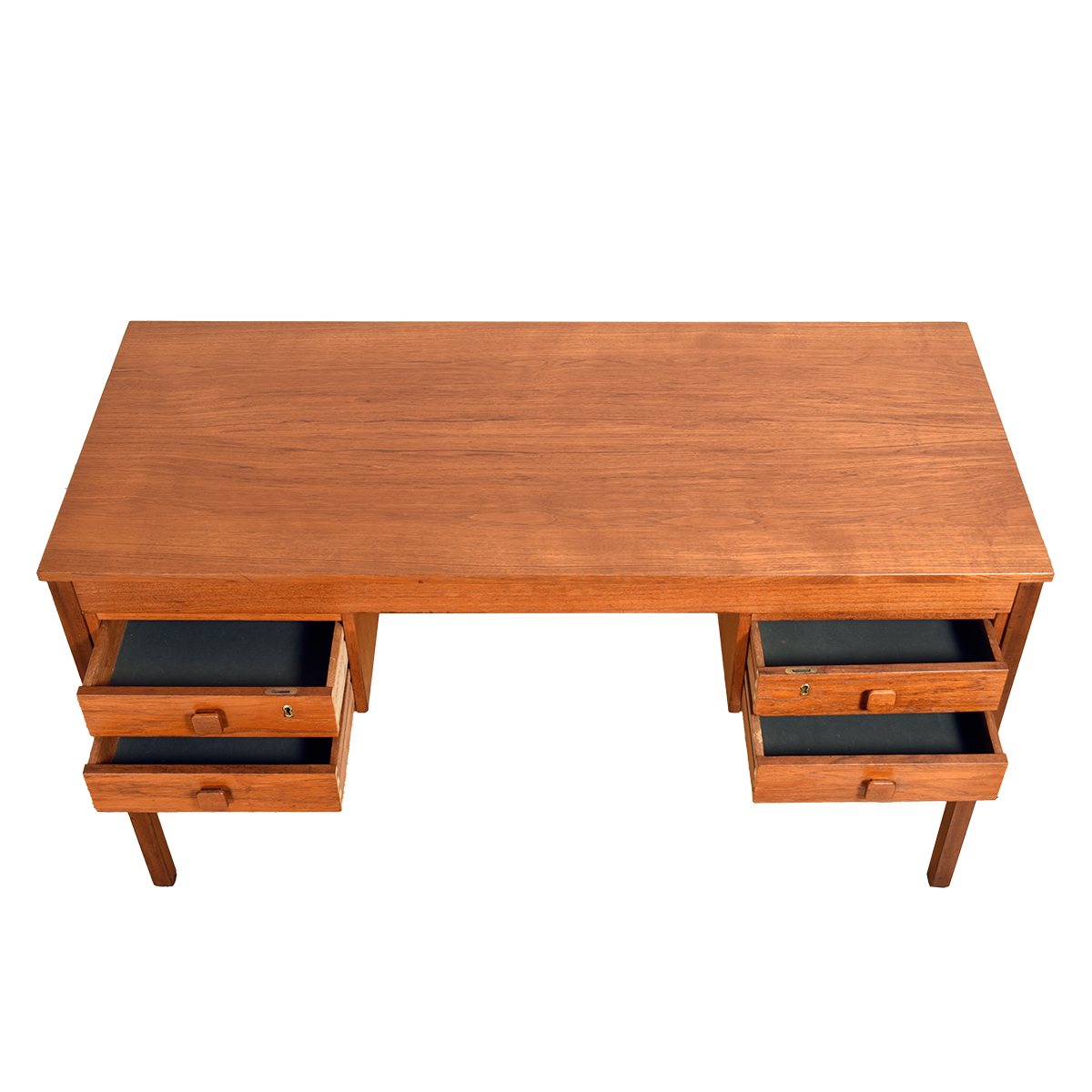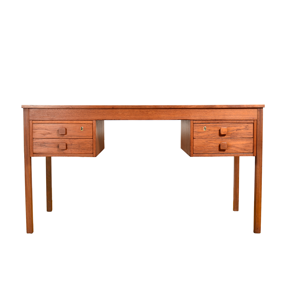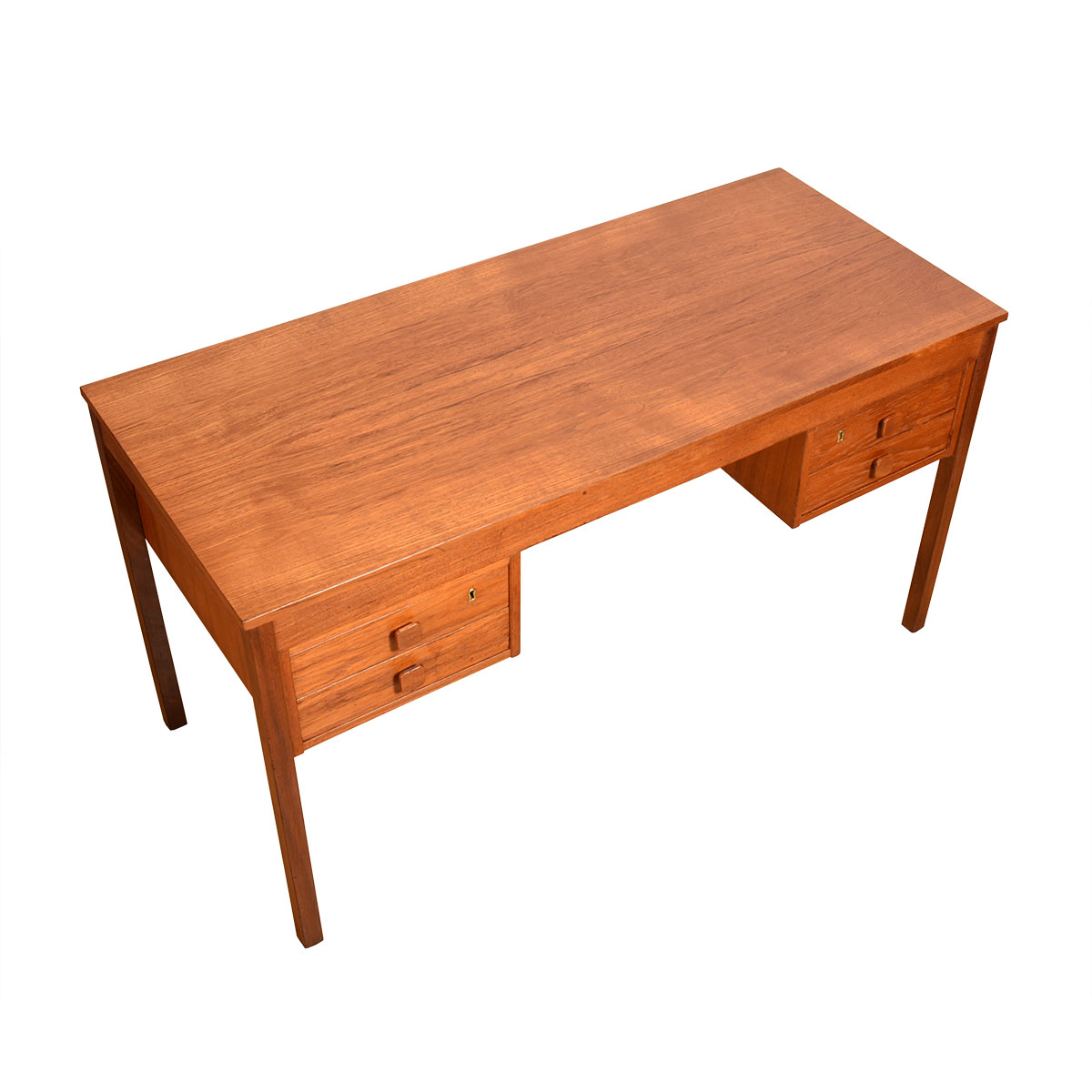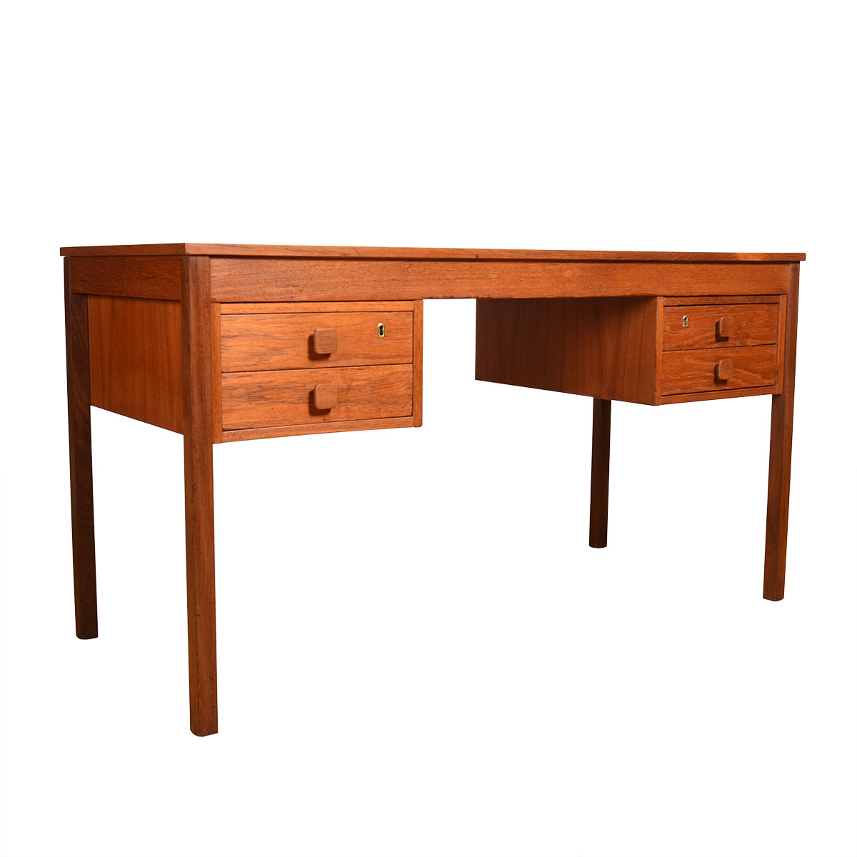 Teak Danish Modern Writing Desk w. Square Pulls