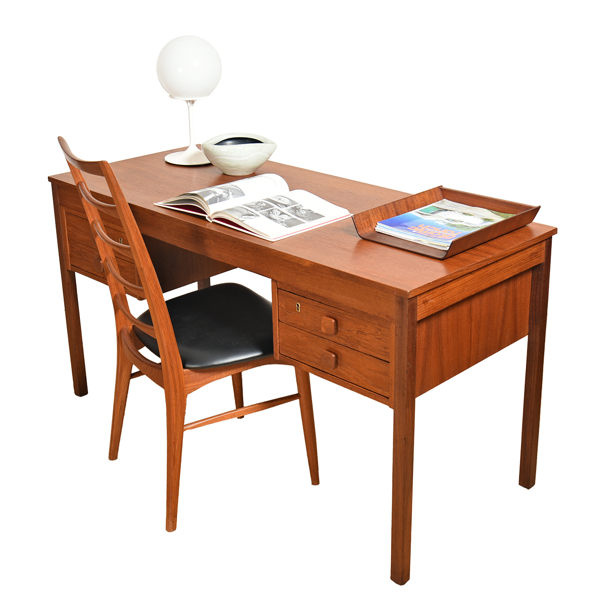 - Compact yet still plenty of room to spread out on this teak desk
