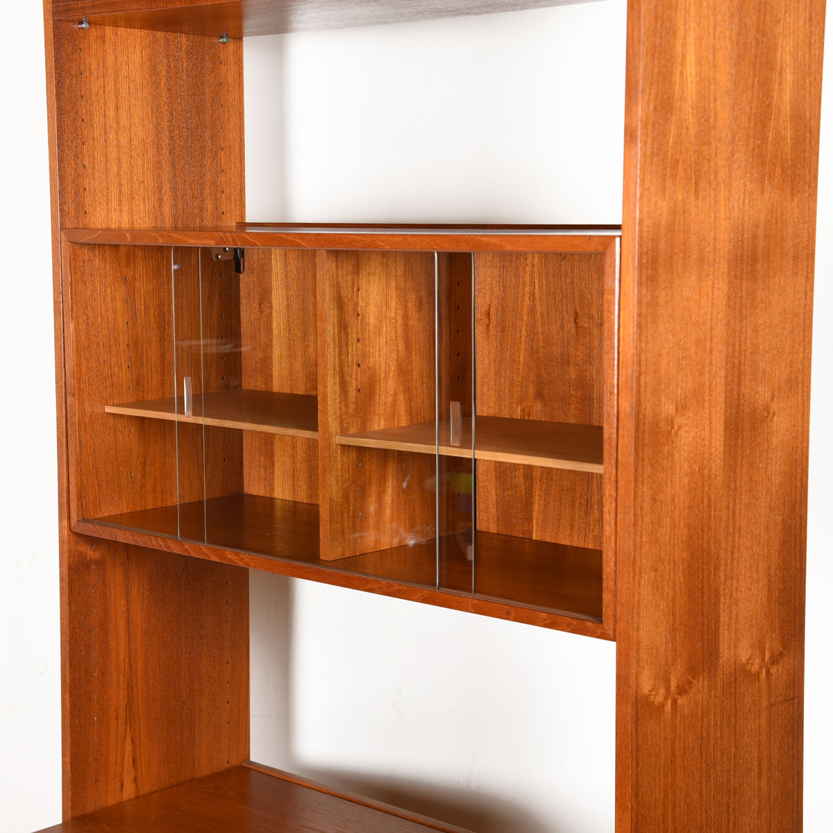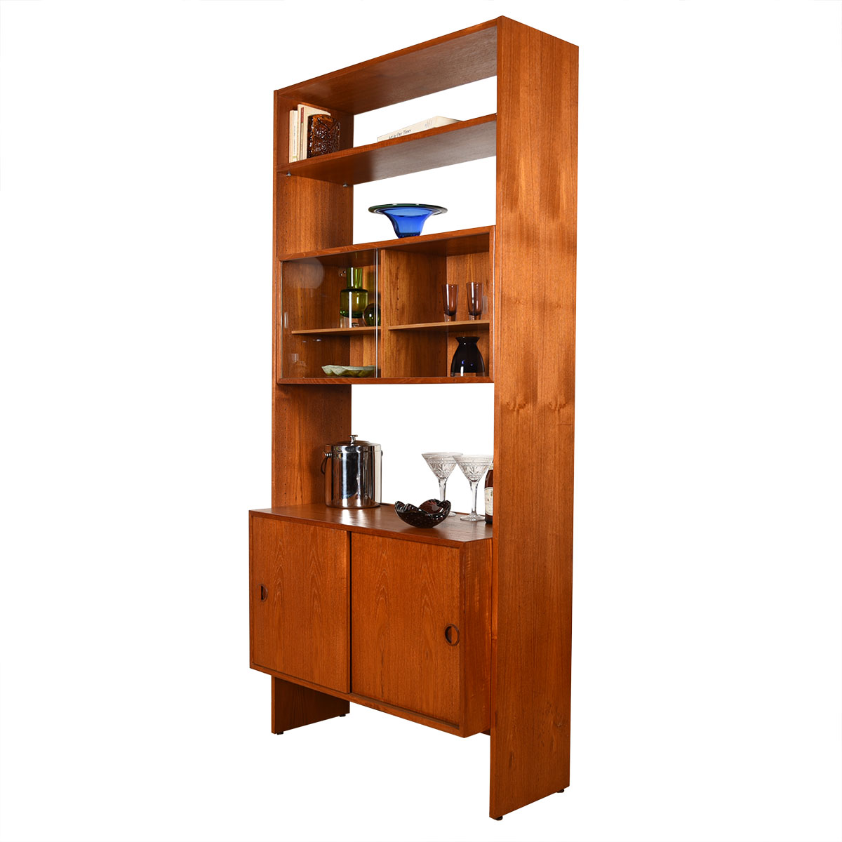 Teak Single Column Wall Unit / Room Divider w/ Glass Door Display Case
