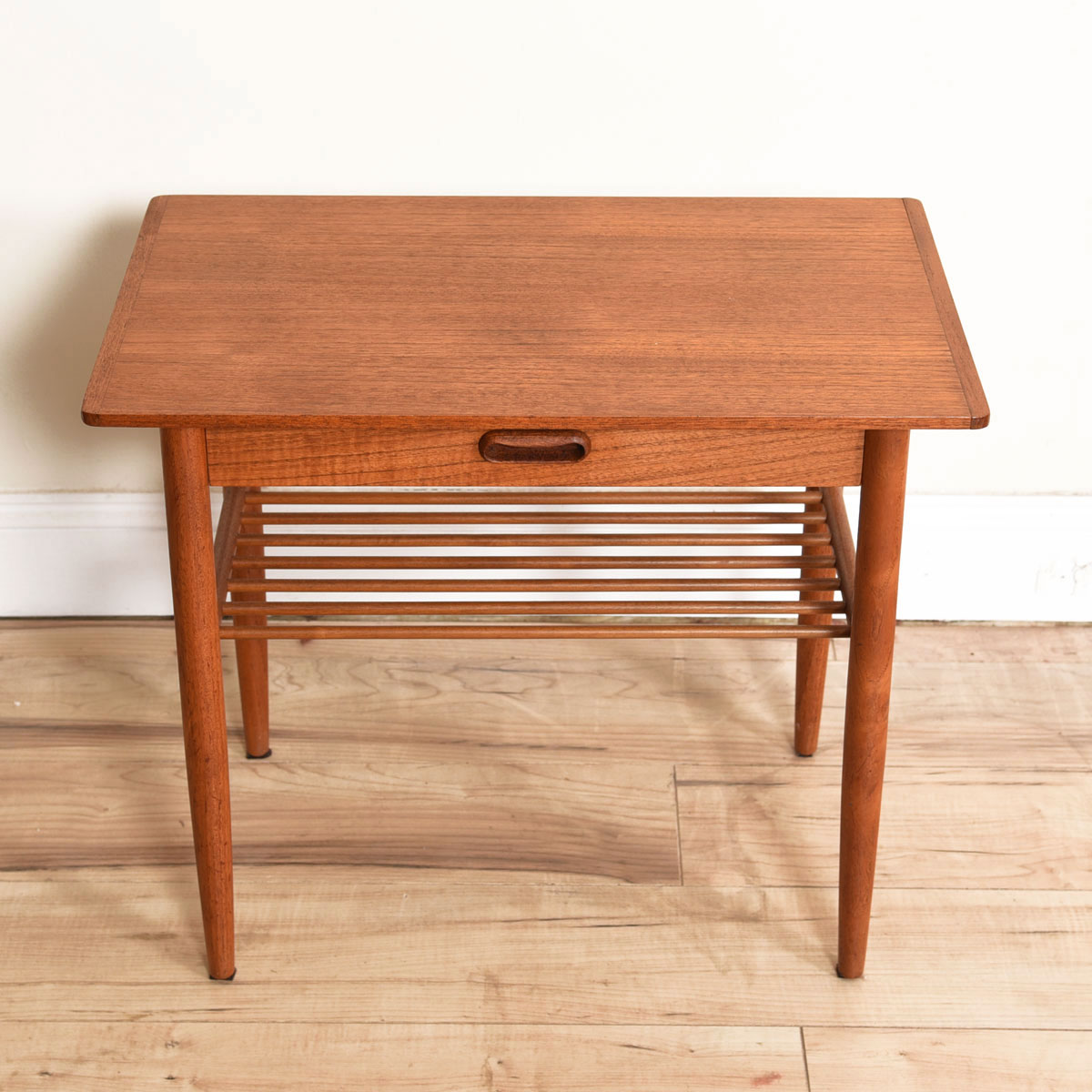 To arrange purchase or for more information about the Teak Single Drawer Accent Table w/ Slatted Shelf please call us at 202.882.1648 or email us at info@modernmobler.com