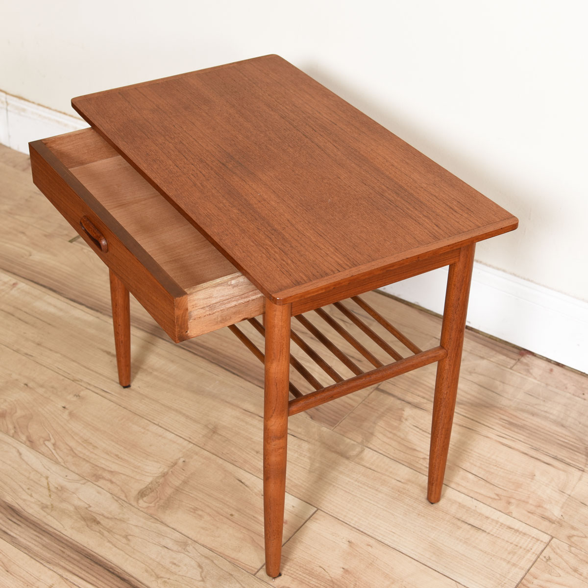 Teak Single Drawer Accent Table w/ Slatted Shelf