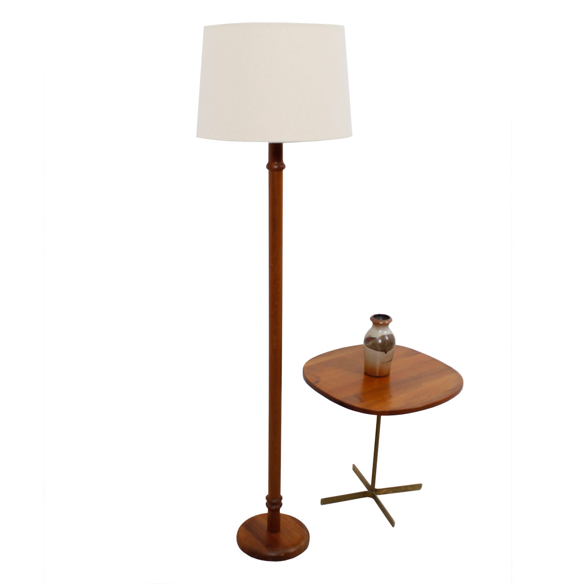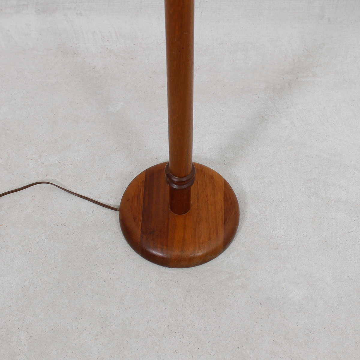 This Danish Modern floor lamp has beautiful detail at the top and bottom of the pole which is a small touch that lifts the ordinary to the extraordinary.