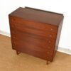 - Each of the five drawers has a small metal oval pull at either end, nicely contrasting with the shape and color of the piece
