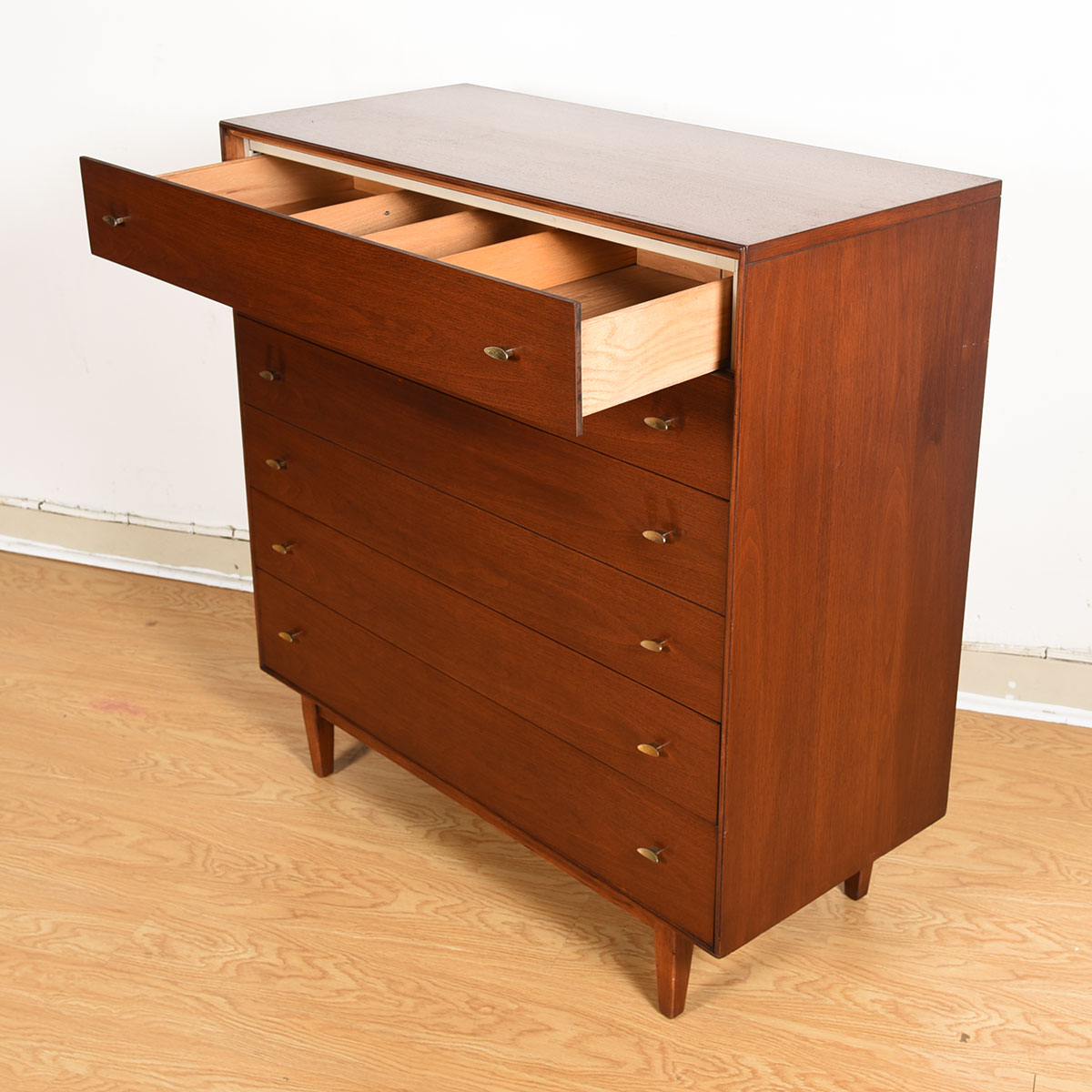 Thin Edge Walnut 5-Drawer Tall Dresser w/ Double-Deep Drawer
