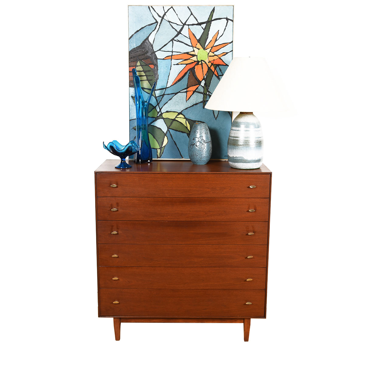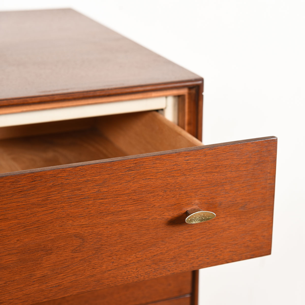 - Handsome MCM dresser in walnut with desirable thin-edge construction