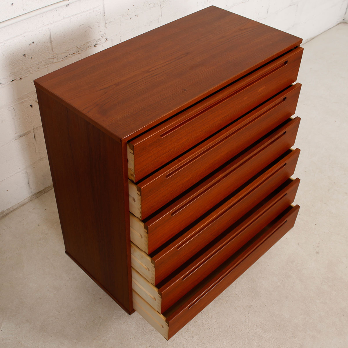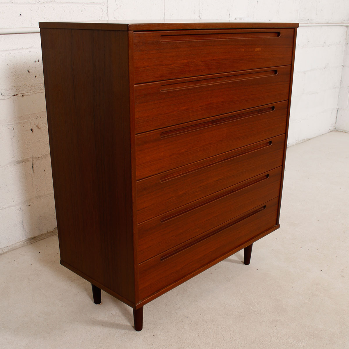 Danish Modern Tall Teak 6 Drawer Dresser / Chest