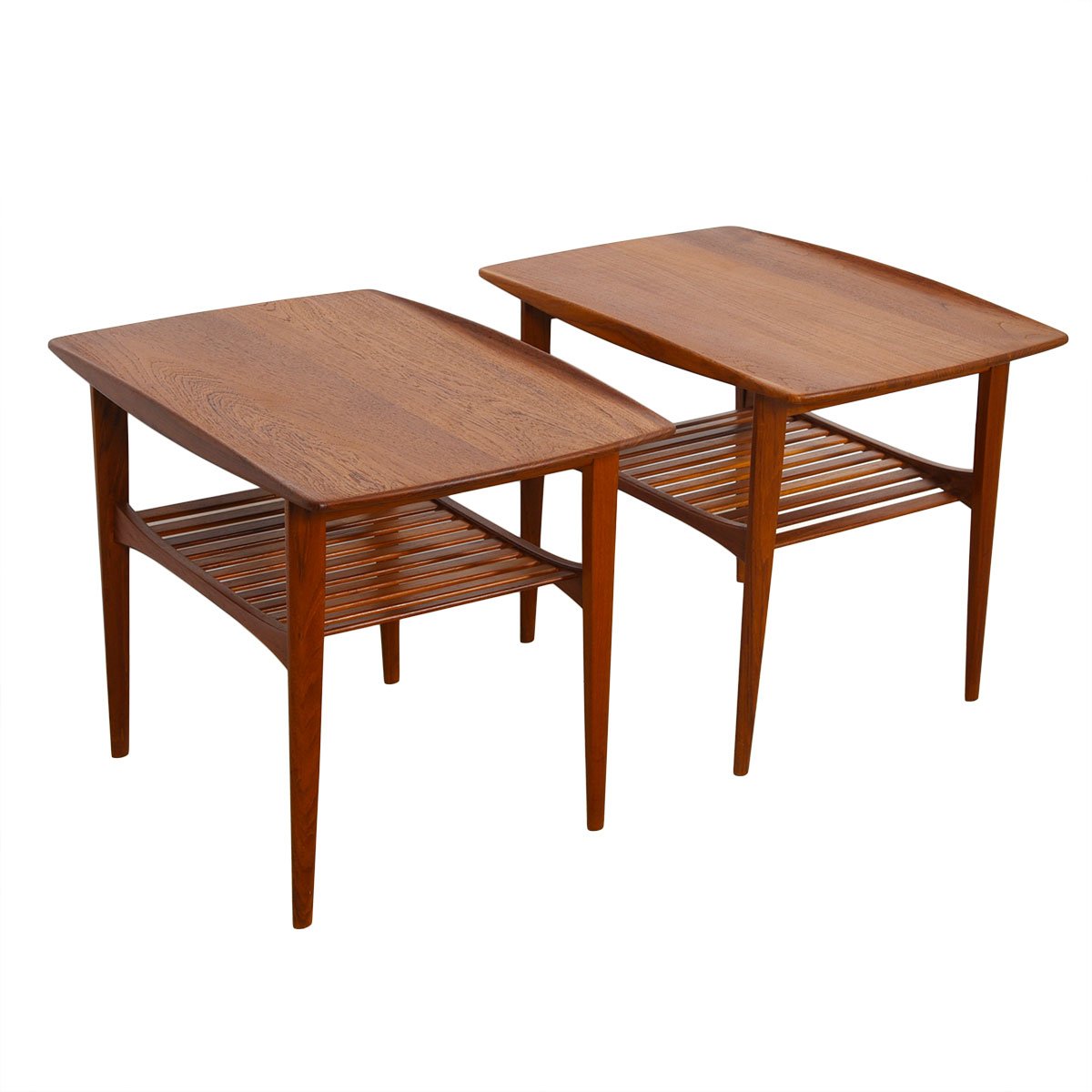 Pair matching Danish Modern end tables in solid teak by Tove and Edvard Kindt-Larsen for France and Sons, model FD 510.